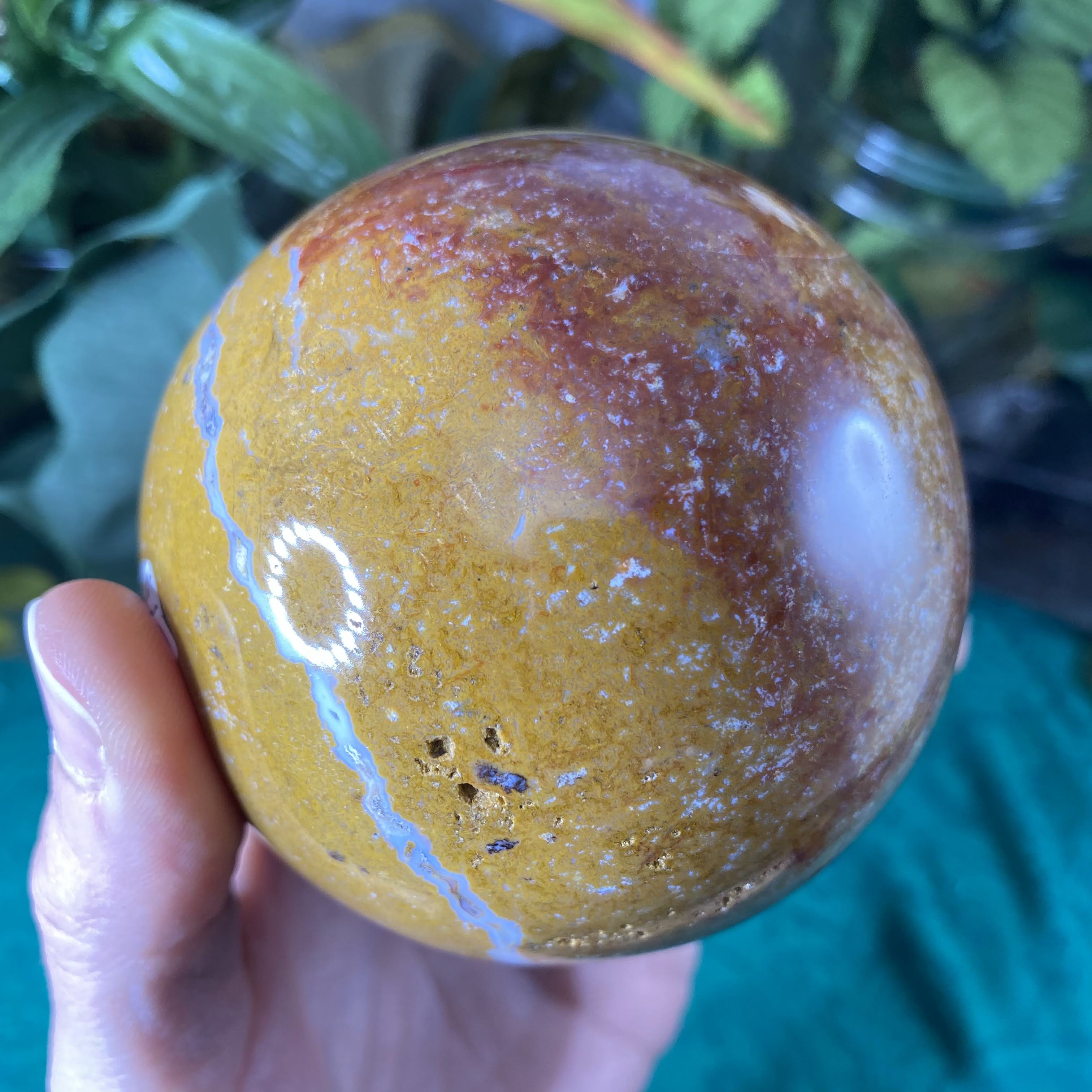 Ocean Jasper is a variety of chalcedony and is absolutely wonderful! Like all jaspers, it is an extremely nurturing, soothing, peaceful and strengthening crystal. My most recent mediation with ocean jasper was exactly about nurturing...visiting past emotional wounds/experiences, providing healing and loving energies to myself at that time. Seeing & feeling myself hold and illuminate myself, infusing my being with nurturing soothing words and light. It has an energy of letting go, bringing up those deep rooted emotional blocks, scars, and patterns, and gently helping us let them go and shine love on them. It’s a good tool help us break those negative thought & anxiety loops that drive us bananas, and help heal at a cellular level. It’s cleansing, stabilizing, negativity repelling vibes will help keep the disruptive thoughts & nightmares at bay and sooth our nerves and help keep us focused. Being a very grounding and centering crystal makes it great for meditation as well as accessing & bringing back with us spiritual wisdom & insight to past lives.