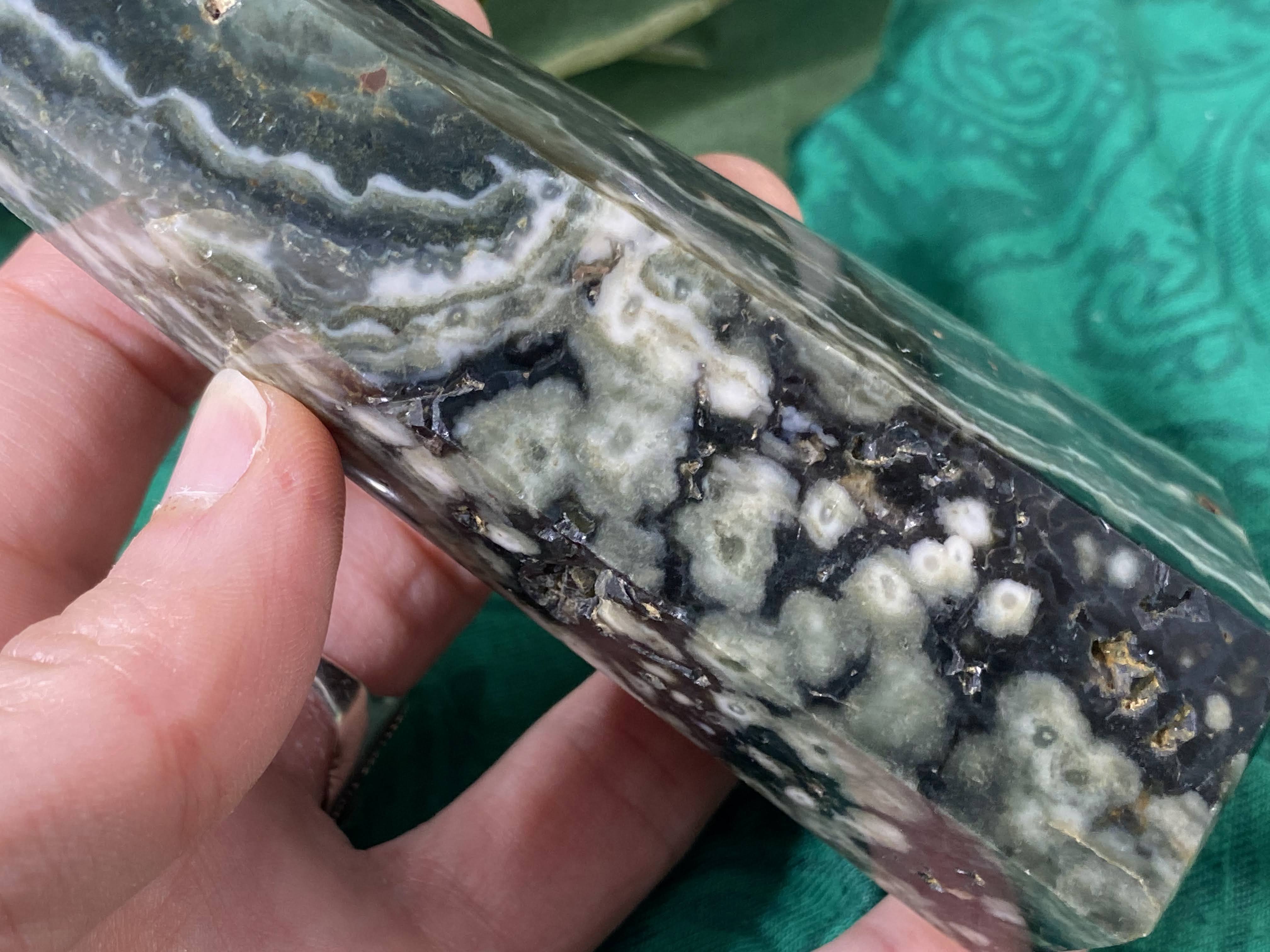 It’s an EXCELLENT crystal to have on hand for healers! It also has a protective energy to help from absorbing others negative energy during healing. Ocean jasper also inspires one to heal and be of service, not only to others but to welcome in healing & what we need for ourselves as we work with others. Boosts empathy while at the same time allowing you to stay separate and keep you on the objective perspective. It’s attitude of patience, honesty, hope, mastering change, and compassion is also helpful for the healing arts or your own healing journey as well as creating our beautiful futures.