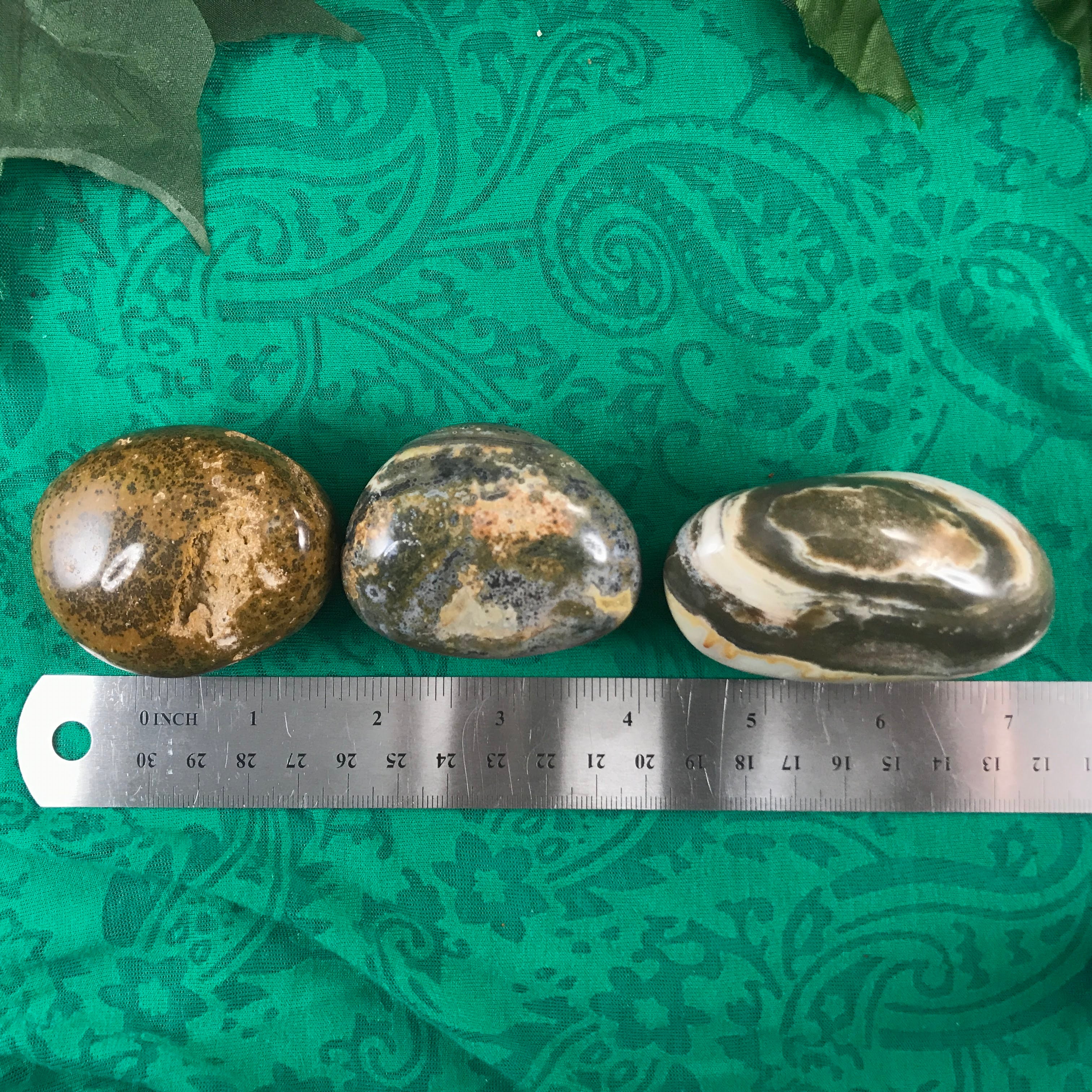 Ocean jasper palm stones, pick the one that calls to you! I shared a video here because some of them have a really fine magical sparkle. These are so sweet!