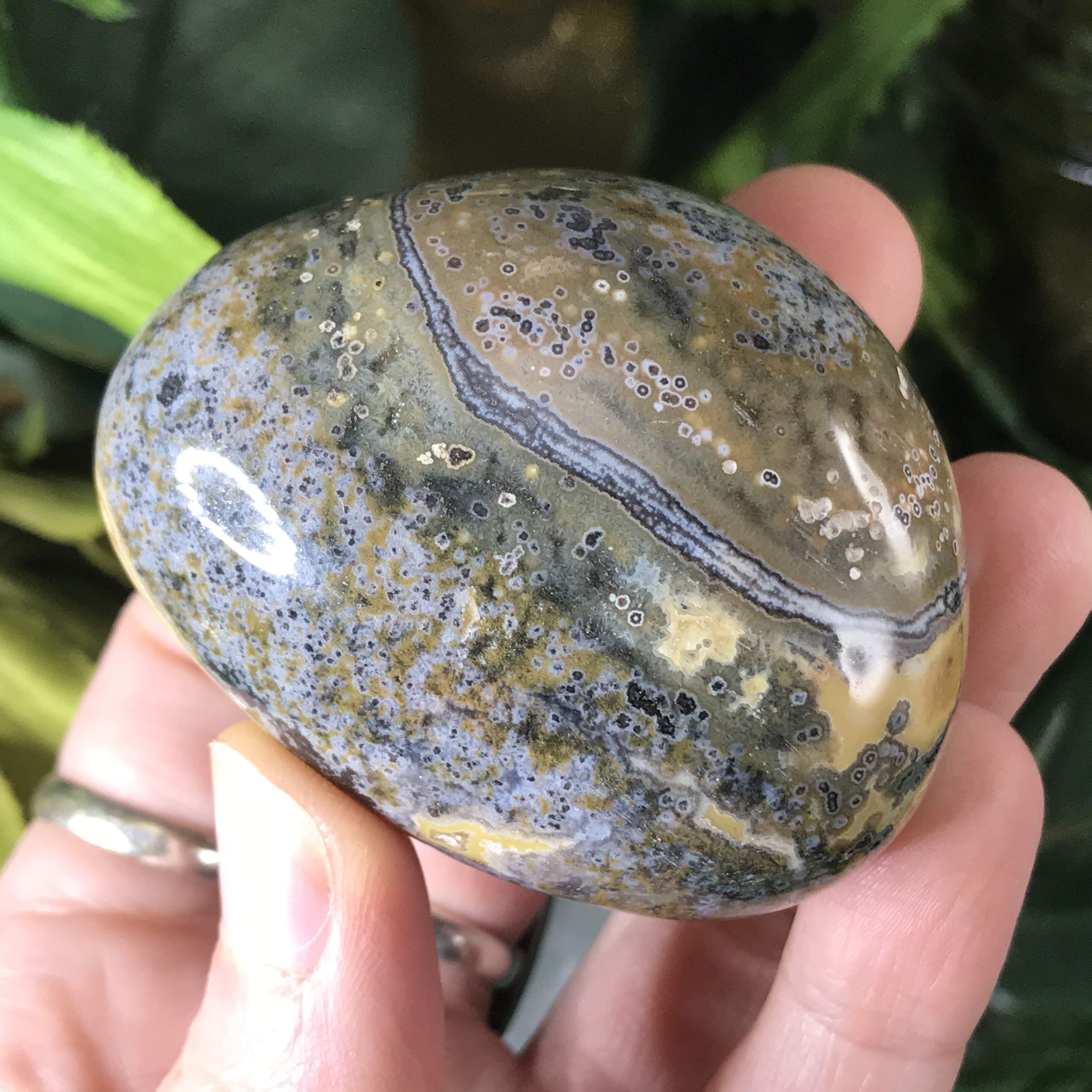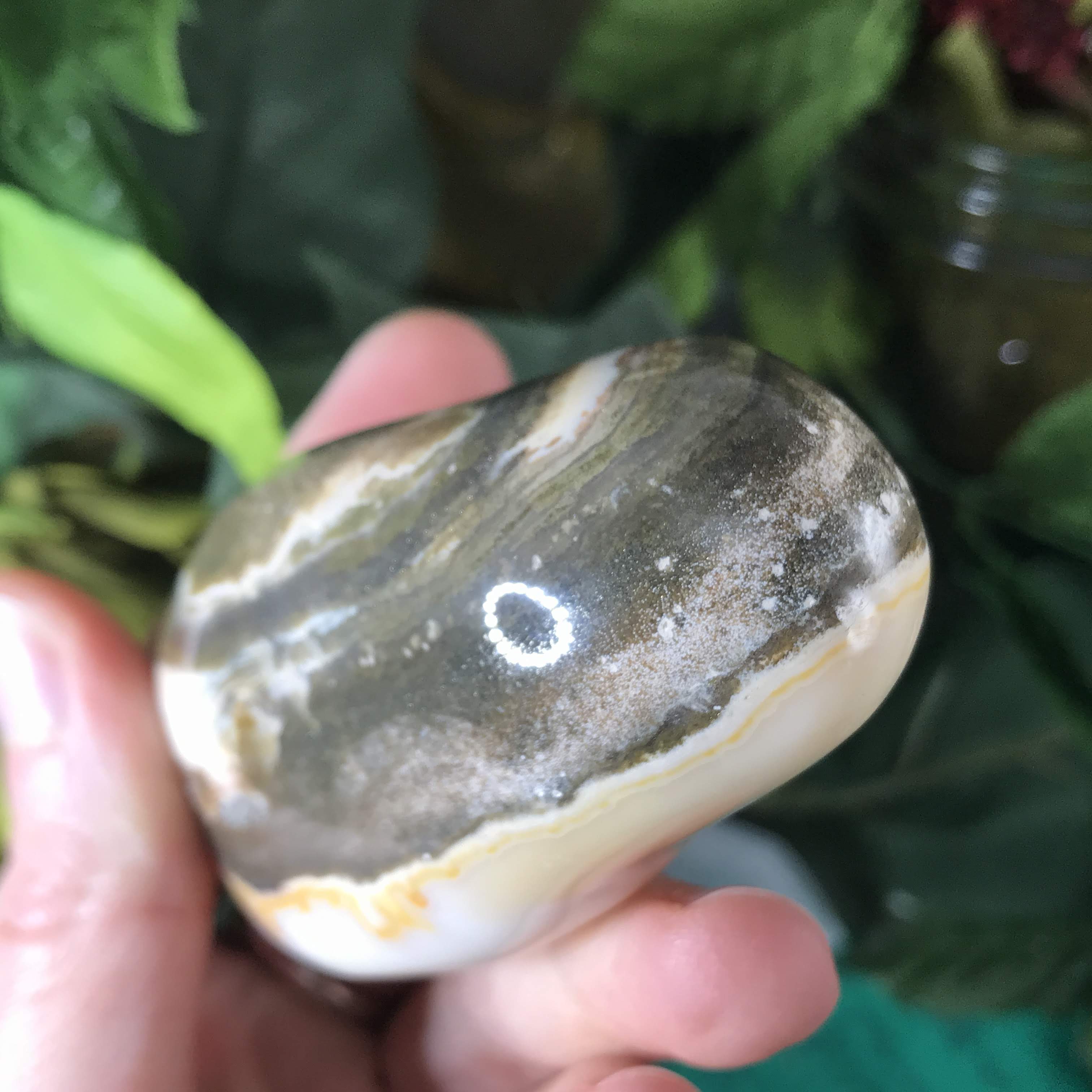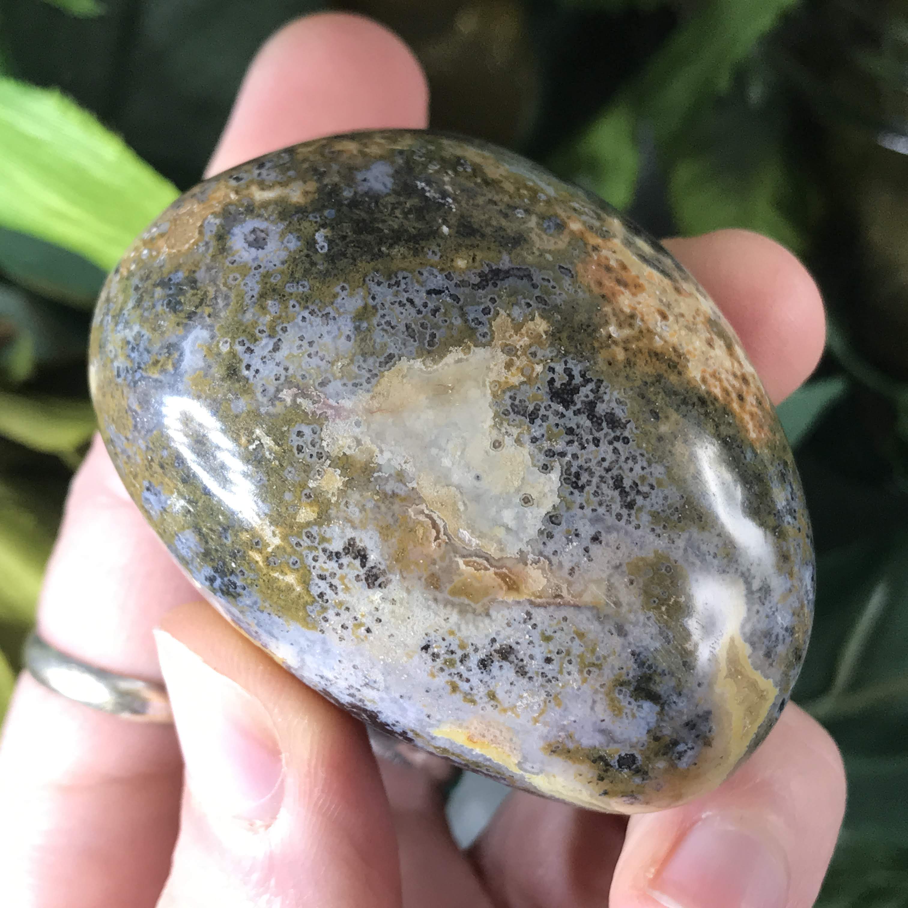 Ocean Jasper is a variety of chalcedony and is absolutely wonderful! Like all jaspers, it is an extremely nurturing, soothing, peaceful and strengthening crystal. My most recent mediation with ocean jasper was exactly about nurturing...visiting past emotional wounds/experiences, providing healing and loving energies to myself at that time. Seeing & feeling myself hold and illuminate myself, infusing my being with nurturing soothing words and light. It has an energy of letting go, bringing up those deep rooted emotional blocks, scars, and patterns, and gently helping us let them go and shine love on them. It’s a good tool help us break those negative thought & anxiety loops that drive us bananas, and help heal at a cellular level. It’s cleansing, stabilizing, negativity repelling vibes will help keep the disruptive thoughts & nightmares at bay and sooth our nerves and help keep us focused. Being a very grounding and centering crystal makes it great for meditation as well as accessing & bringing back with us spiritual wisdom & insight to past lives.