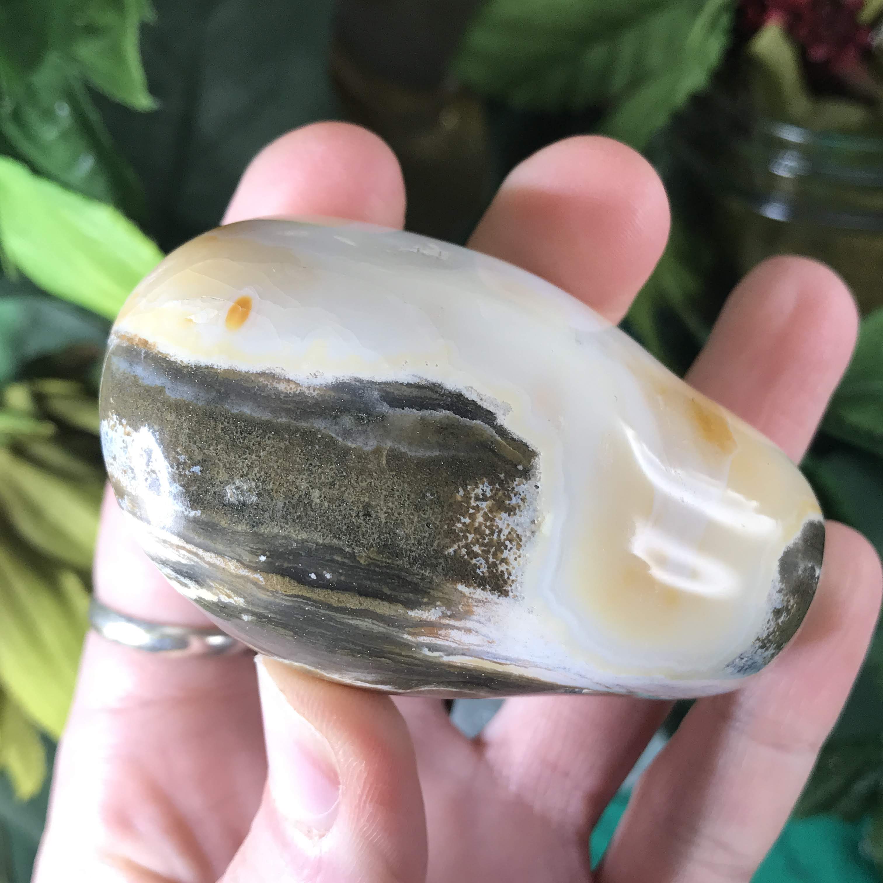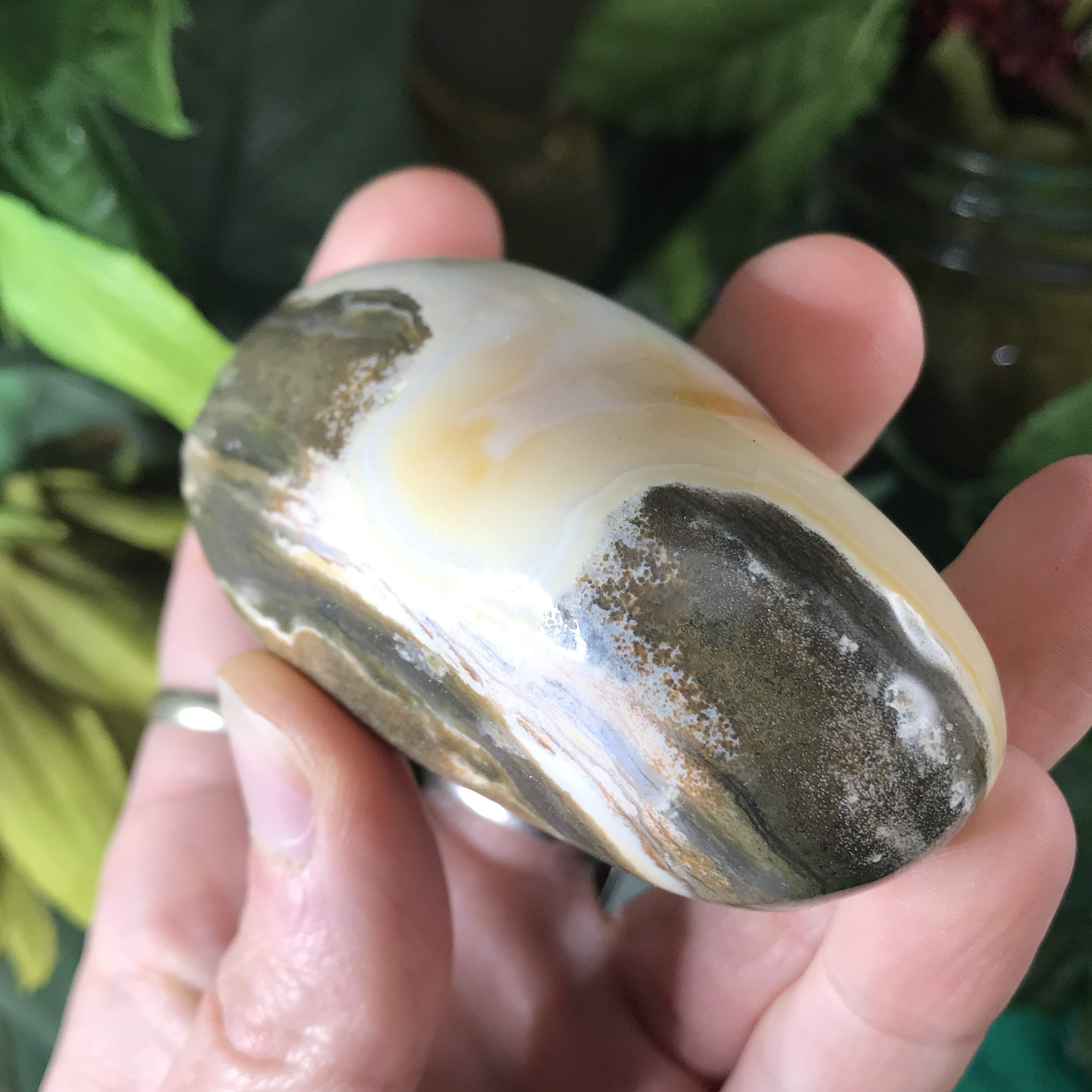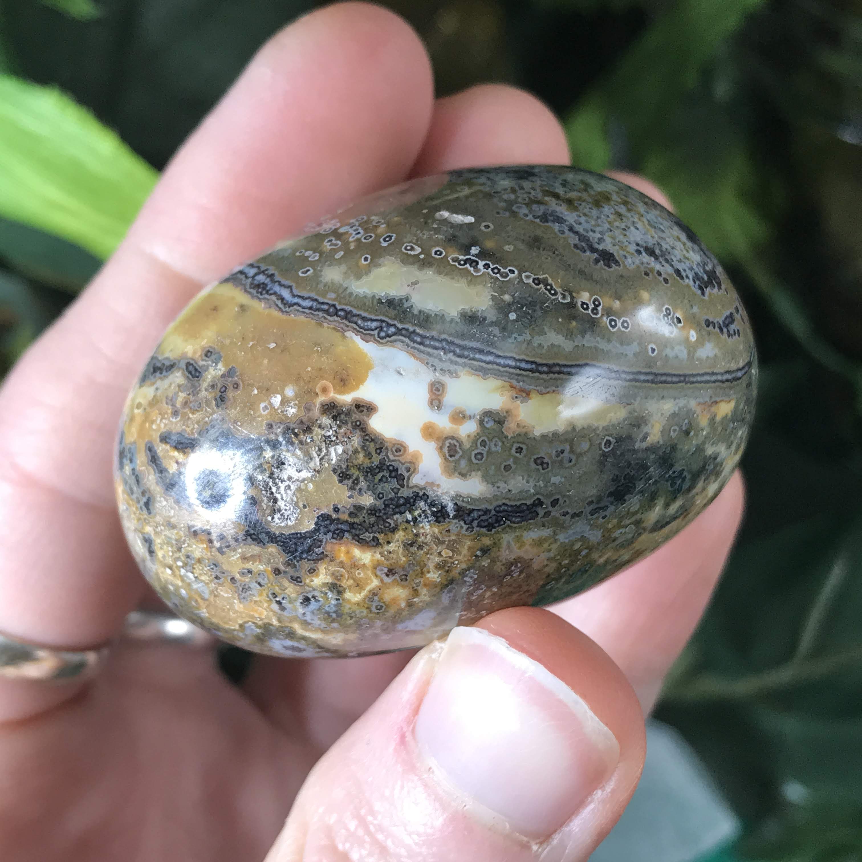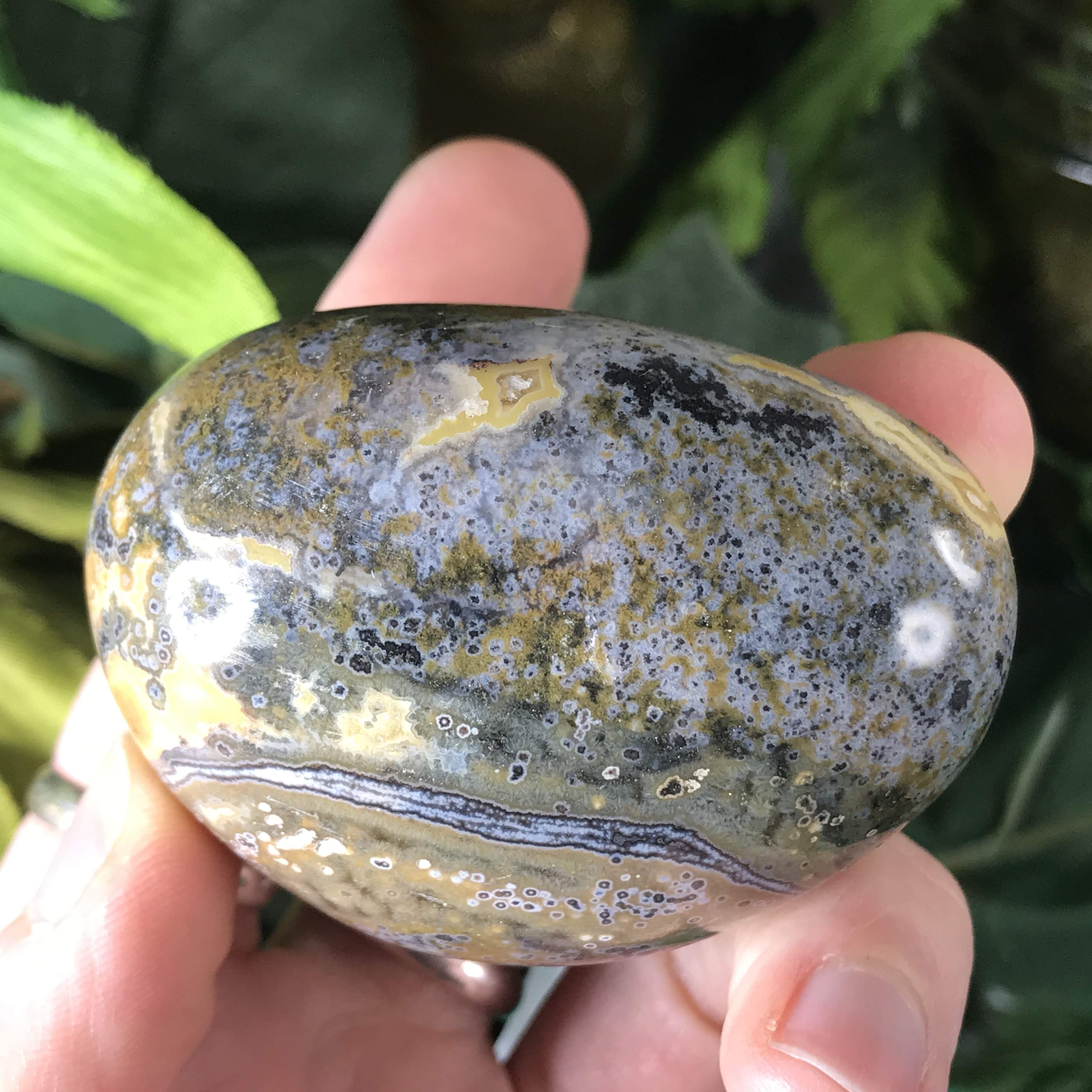Ocean Jasper is a variety of chalcedony and is absolutely wonderful! Like all jaspers, it is an extremely nurturing, soothing, peaceful and strengthening crystal. My most recent mediation with ocean jasper was exactly about nurturing...visiting past emotional wounds/experiences, providing healing and loving energies to myself at that time. Seeing & feeling myself hold and illuminate myself, infusing my being with nurturing soothing words and light. It has an energy of letting go, bringing up those deep rooted emotional blocks, scars, and patterns, and gently helping us let them go and shine love on them. It’s a good tool help us break those negative thought & anxiety loops that drive us bananas, and help heal at a cellular level. It’s cleansing, stabilizing, negativity repelling vibes will help keep the disruptive thoughts & nightmares at bay and sooth our nerves and help keep us focused. Being a very grounding and centering crystal makes it great for meditation as well as accessing & bringing back with us spiritual wisdom & insight to past lives.