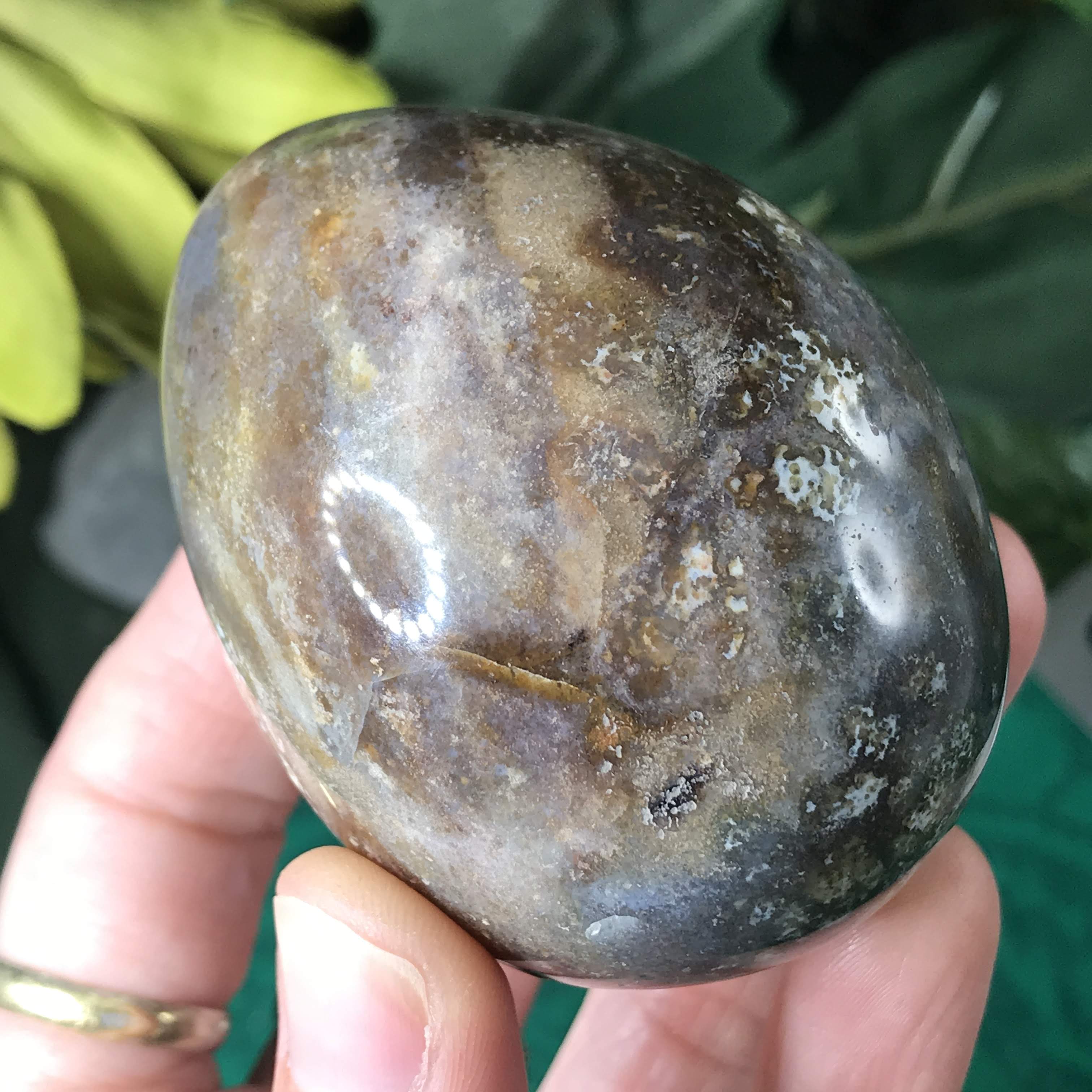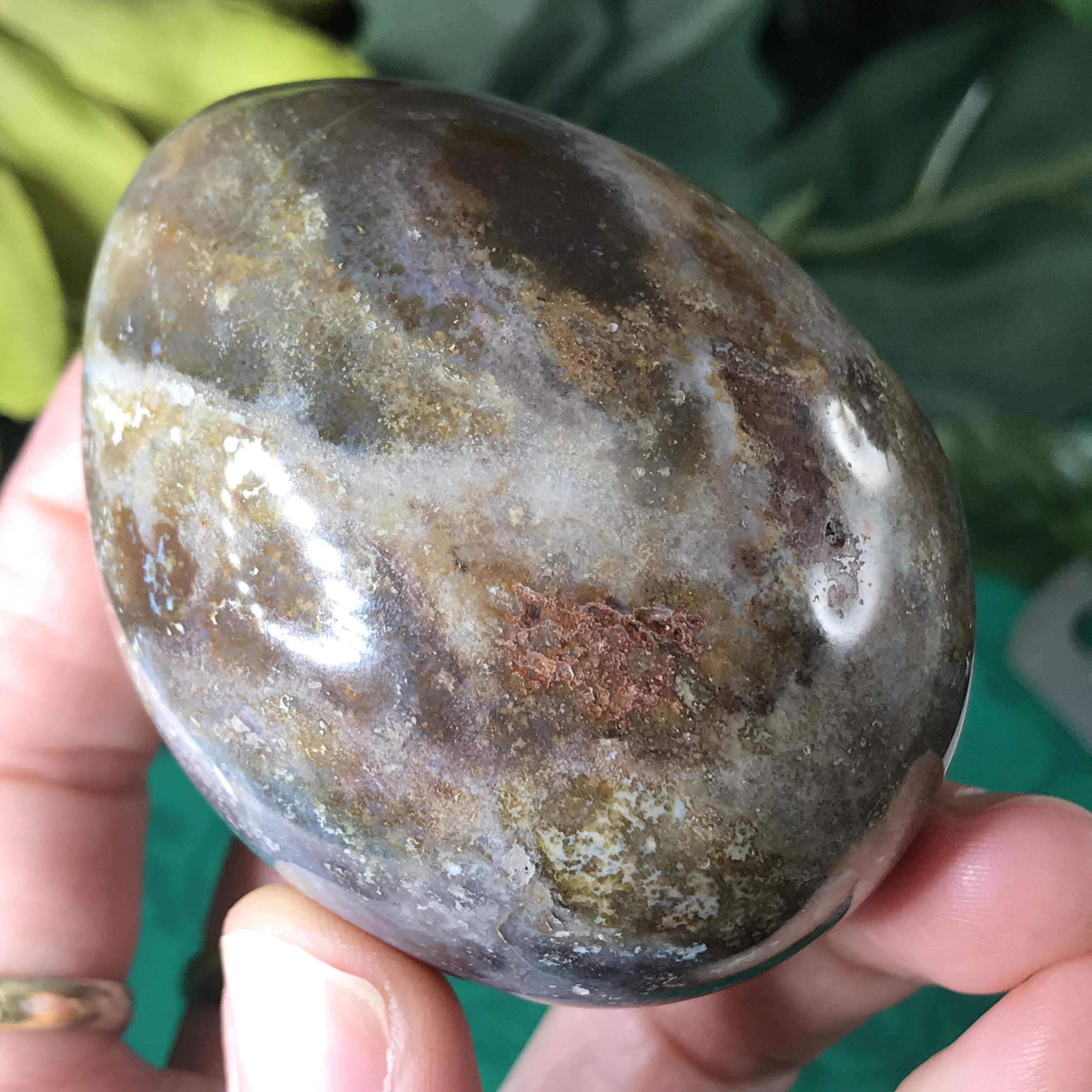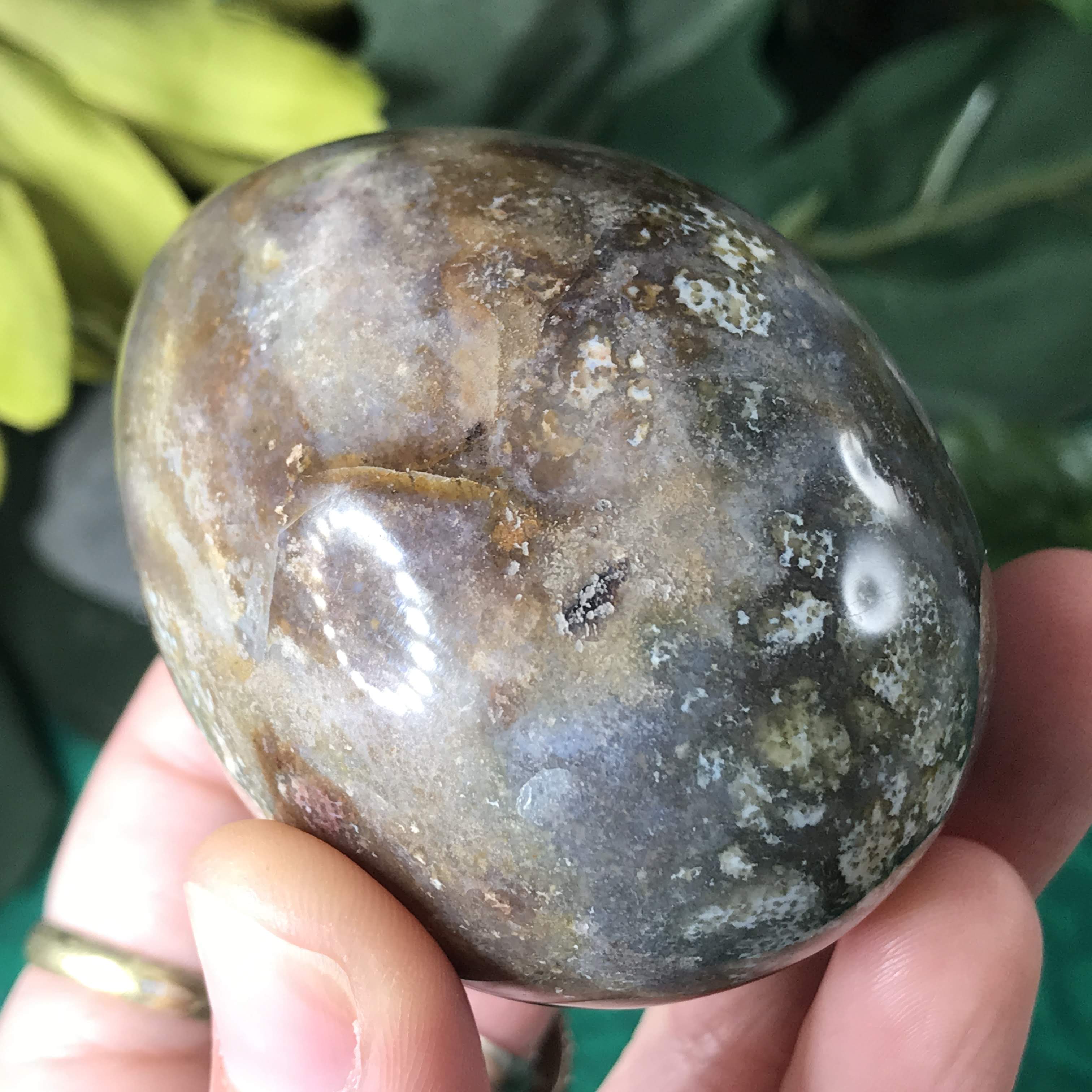Ocean Jasper is a variety of chalcedony and is absolutely wonderful! Like all jaspers, it is an extremely nurturing, soothing, peaceful and strengthening crystal. My most recent mediation with ocean jasper was exactly about nurturing...visiting past emotional wounds/experiences, providing healing and loving energies to myself at that time. Seeing & feeling myself hold and illuminate myself, infusing my being with nurturing soothing words and light. It has an energy of letting go, bringing up those deep rooted emotional blocks, scars, and patterns, and gently helping us let them go and shine love on them. It’s a good tool help us break those negative thought & anxiety loops that drive us bananas, and help heal at a cellular level. It’s cleansing, stabilizing, negativity repelling vibes will help keep the disruptive thoughts & nightmares at bay and sooth our nerves and help keep us focused. Being a very grounding and centering crystal makes it great for meditation as well as accessing & bringing back with us spiritual wisdom & insight to past lives.
