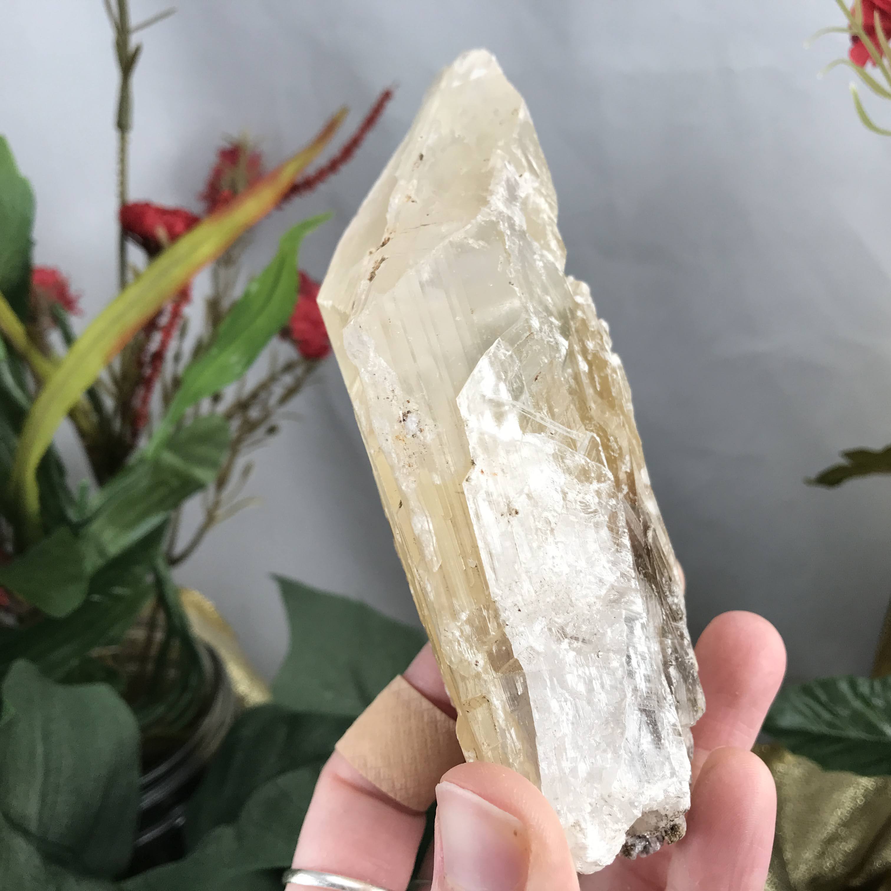 Wonderful to work with for meditation, energy work, manifesting, and cleansing! A great blade to cut energetic cords (bye byeeeee!). An excellent display piece. Please be gentle with selenite, it is a delicate mineral and it is common for a piece or flake or two to come off when handling. Handle with care and love ♥ Please wash hands after handling as there may be other minerals present.