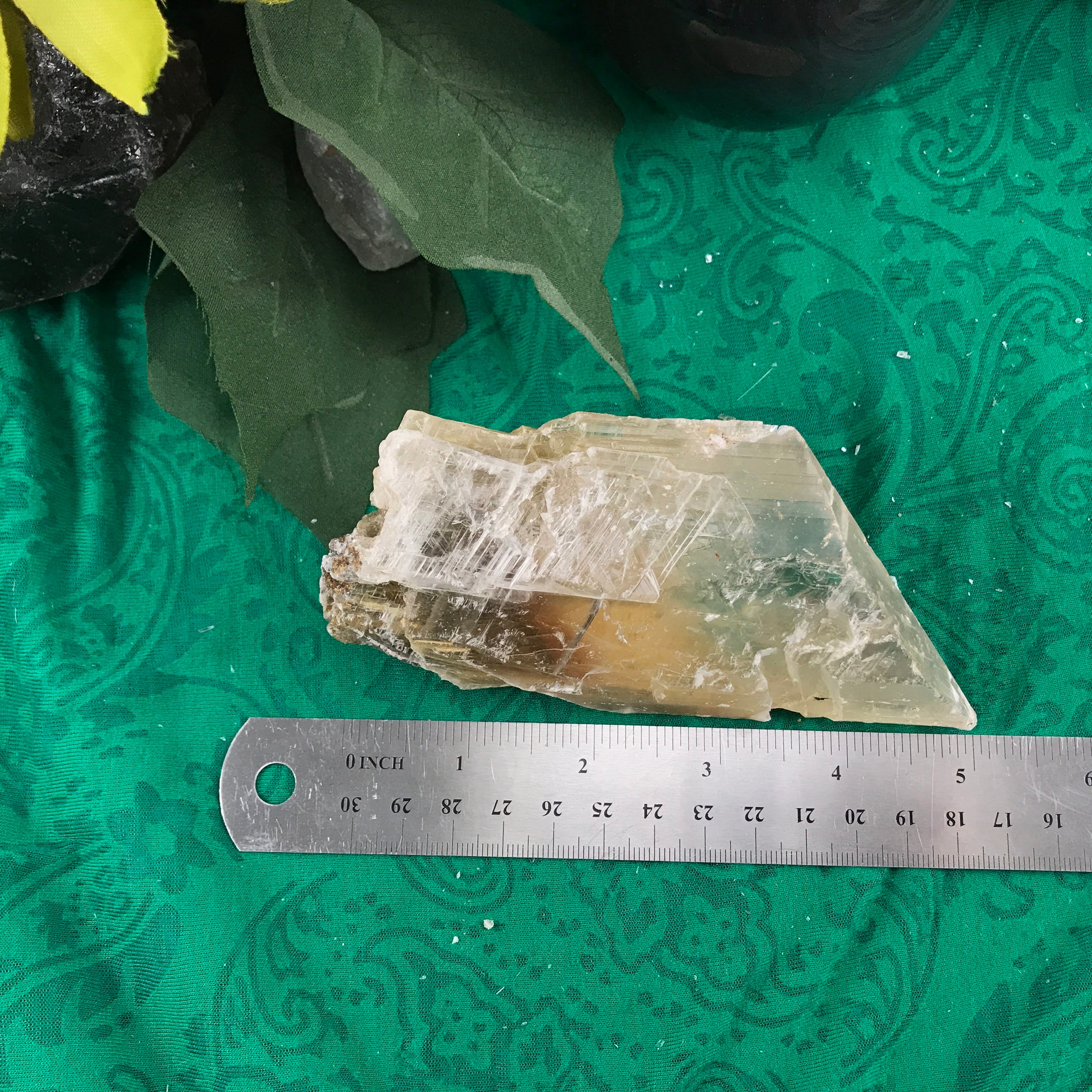 This here, is real selenite, not satin spar gypsum. The energy of true selenite is much more clear and powerful in my opinion. These crystals are like a bath of cleansing, refreshing, divine light energy. This light energy can help create direct communication to your angels, guardians, guides, the higher self, and divine beings. It can be a catalyst for awakening and connecting one to the mystic consciousness, which can be helpful in remembering one’s spiritual & psychic gifts. Also a connector to accessing past, present, and future lives.