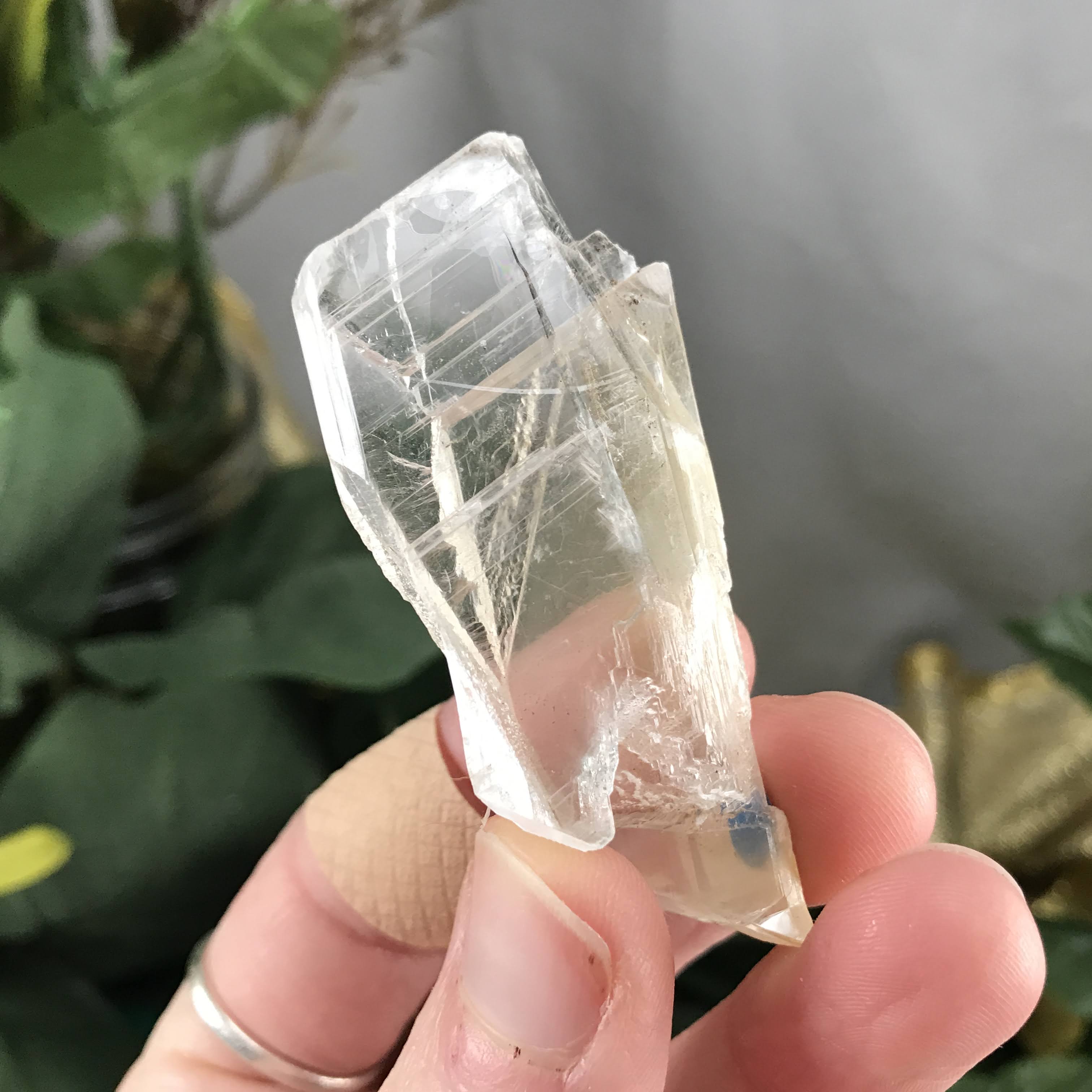 This here, is real selenite, not satin spar gypsum. The energy of true selenite is much more clear and powerful in my opinion. These crystals are like a bath of cleansing, refreshing, divine light energy. This light energy can help create direct communication to your angels, guardians, guides, the higher self, and divine beings. It can be a catalyst for awakening and connecting one to the mystic consciousness, which can be helpful in remembering one’s spiritual & psychic gifts. Also a connector to accessing past, present, and future lives.
