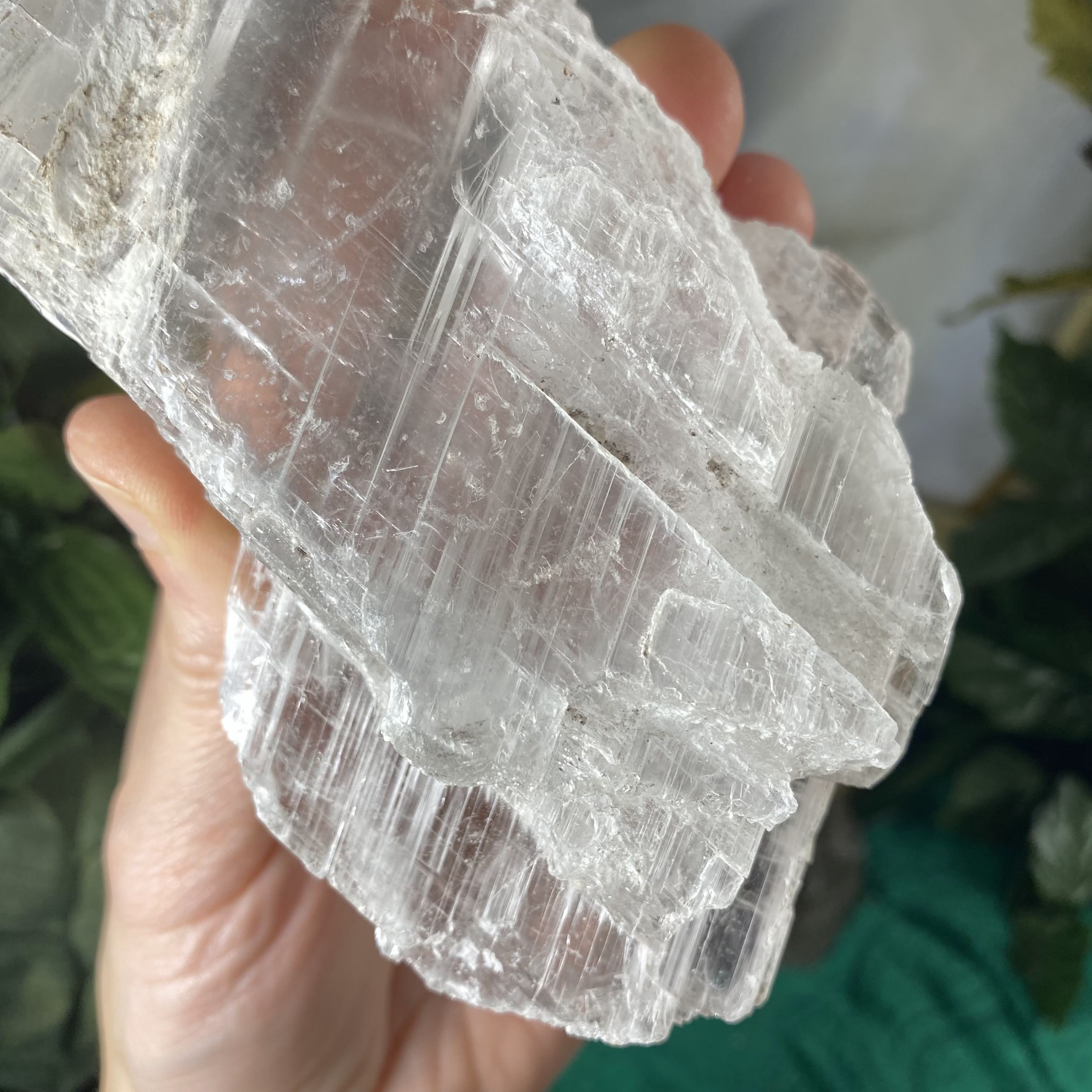It’s excellent to work with to cleanse, charge, refresh & repair your energy bodies (including mental & emotional too) and chakras as well as other crystals and objects. This refresh and recharge can be especially helpful when moving forward through transitions, transformations, and forward motion into new things. I love using selenite to sweep and cleanse energy fields and cut cords. I’ve also found soothing cleansing results meditating with and doing energy work placing selenite down my spinal column. I’ve also used it for chronic aches and pains. On bad pain days, having the crystal over the area while envisioning brilliant white light from the divine shining from the crystal and gently seeping into my body to illuminate it and bring relief.