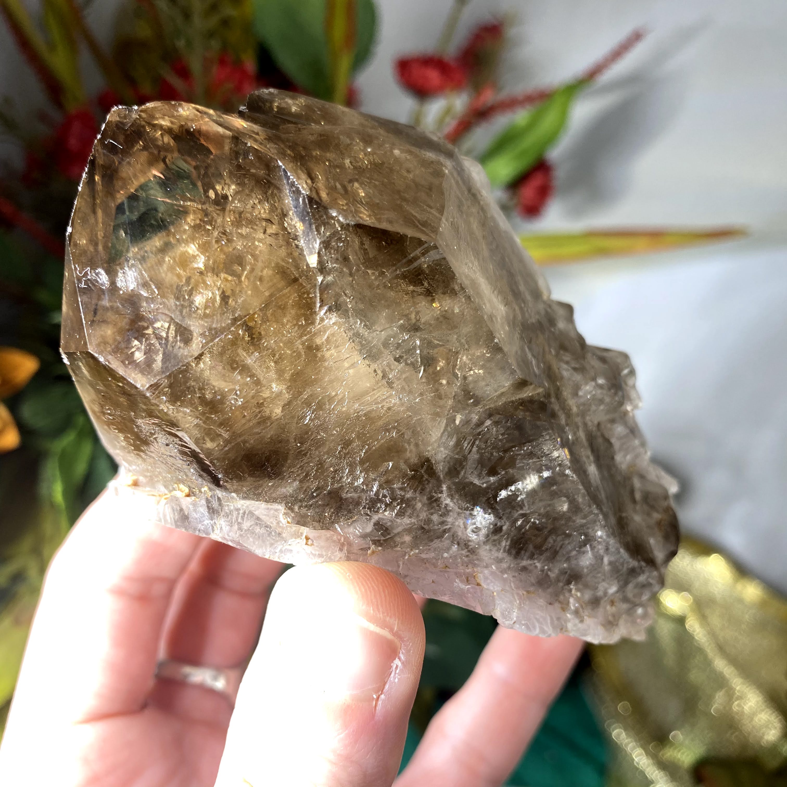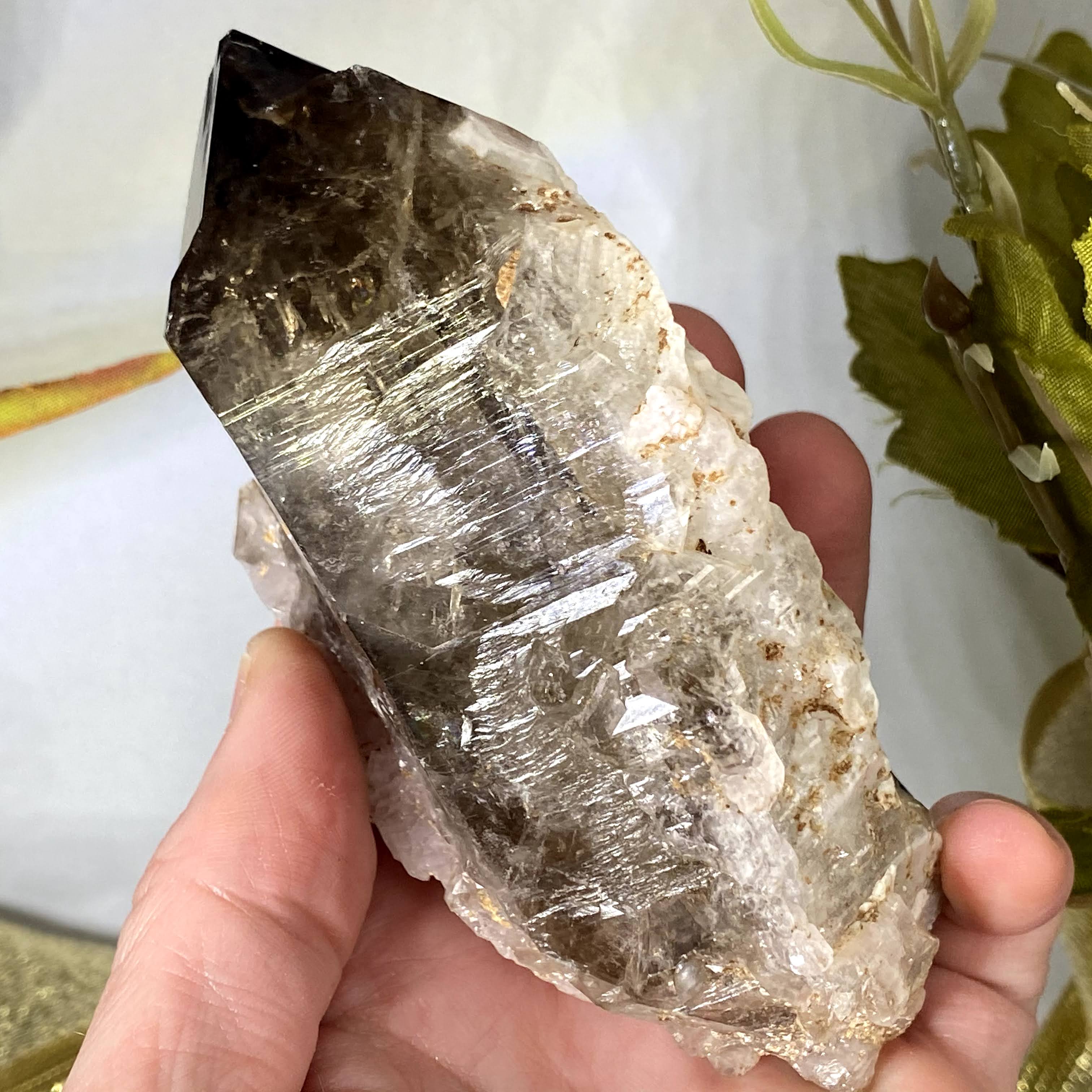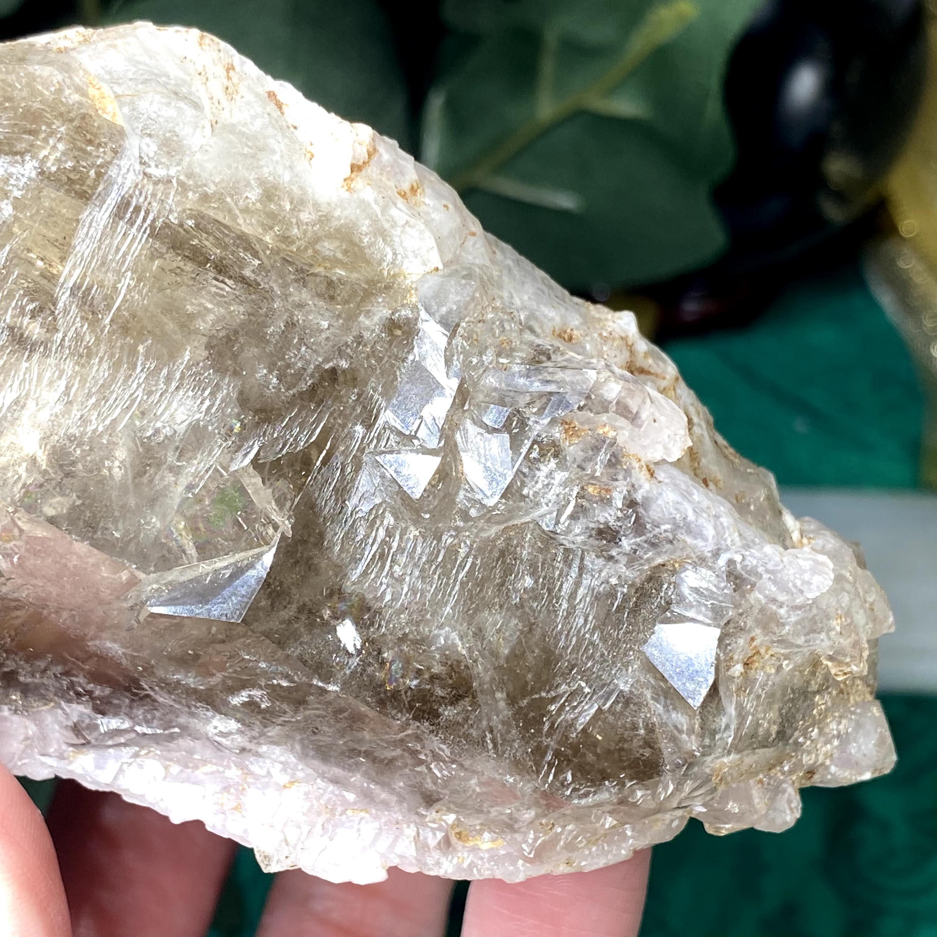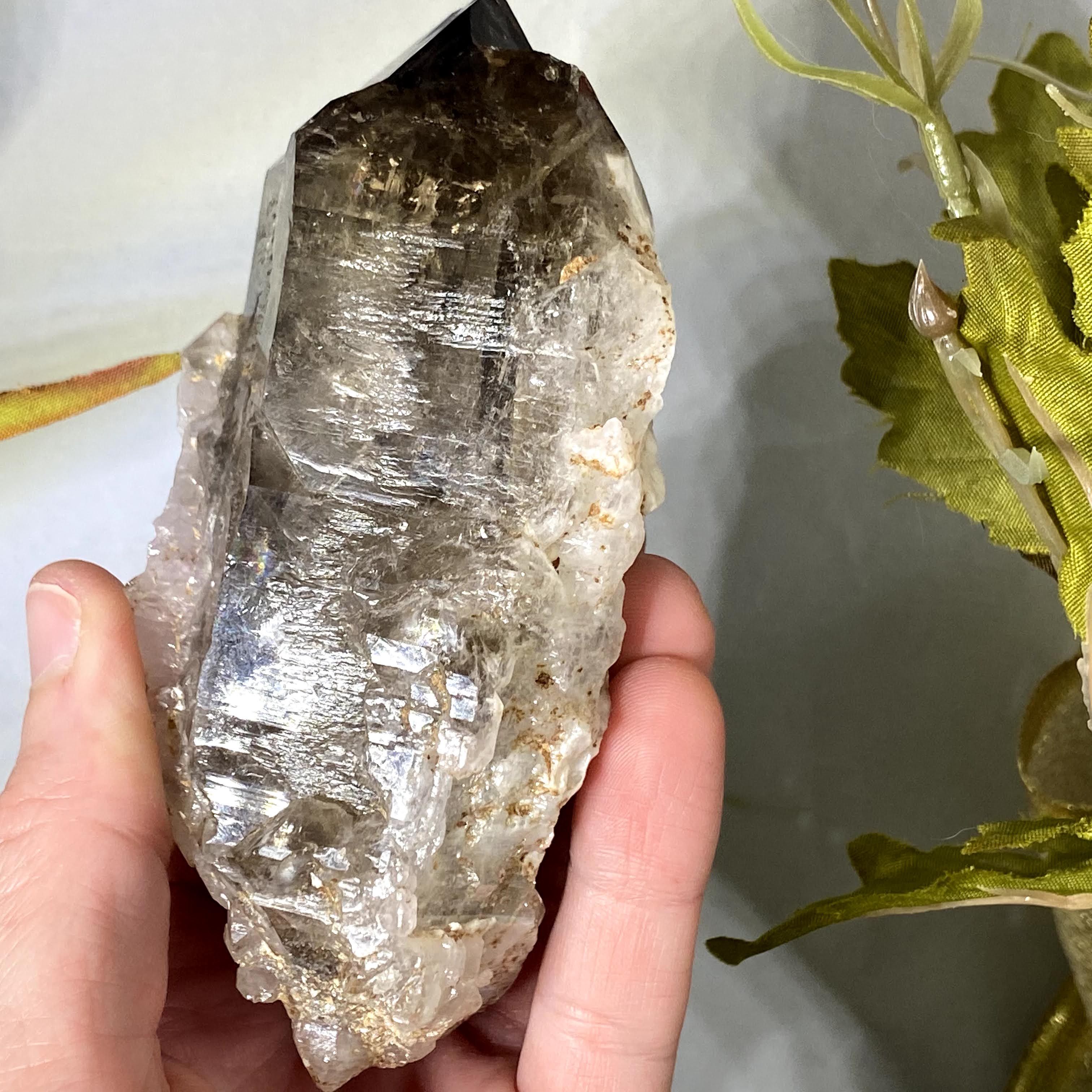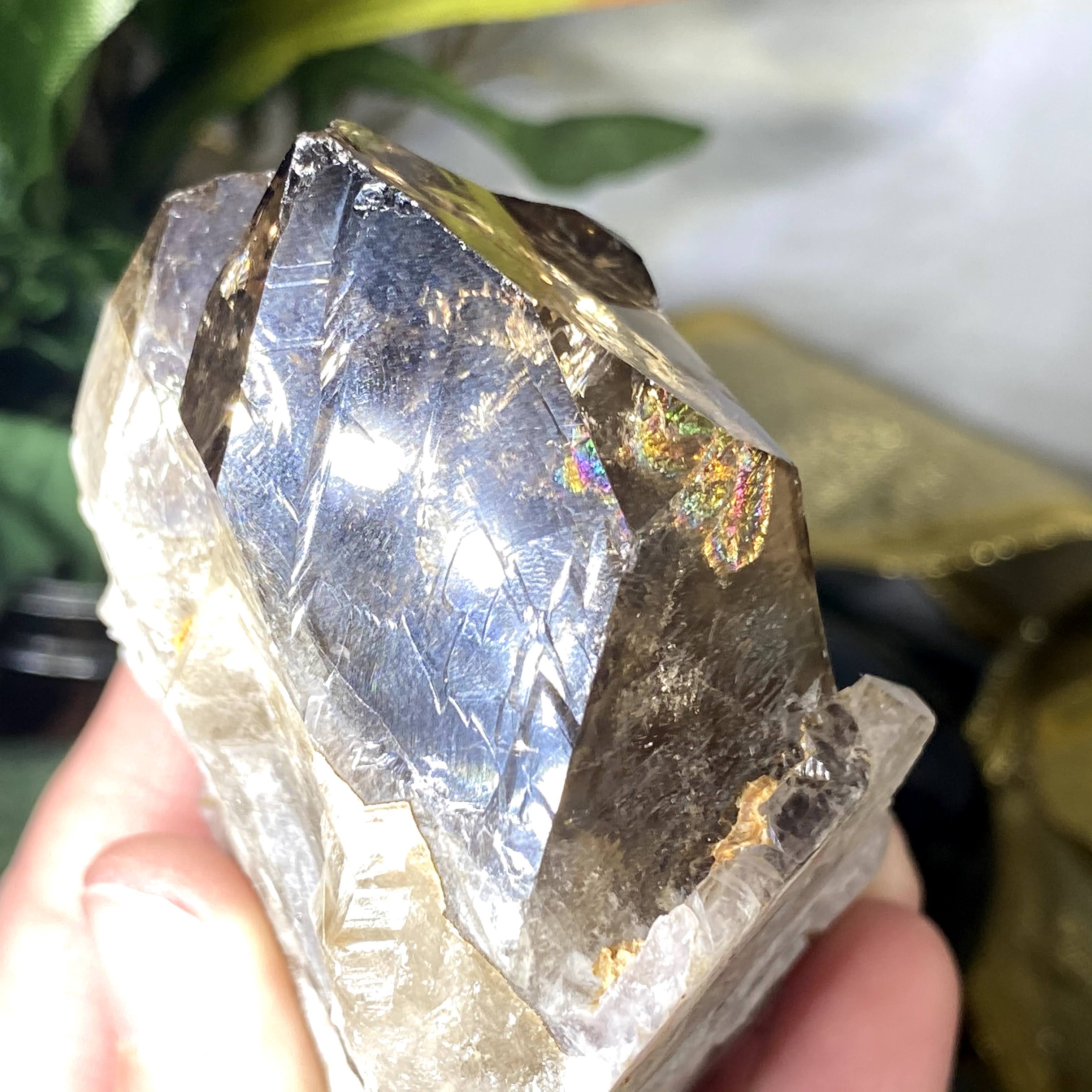 Well this hasn't been a favorite of mine in the shop for no reason, this beauty is not only GORGEOUS but also has so much to offer energetically! But oly moly is it a BEAUTY! This all natural smoky elestial, with etching, record keepers, rainbows, and light phantoms, is an absolutely incredible one and from Brazil.
