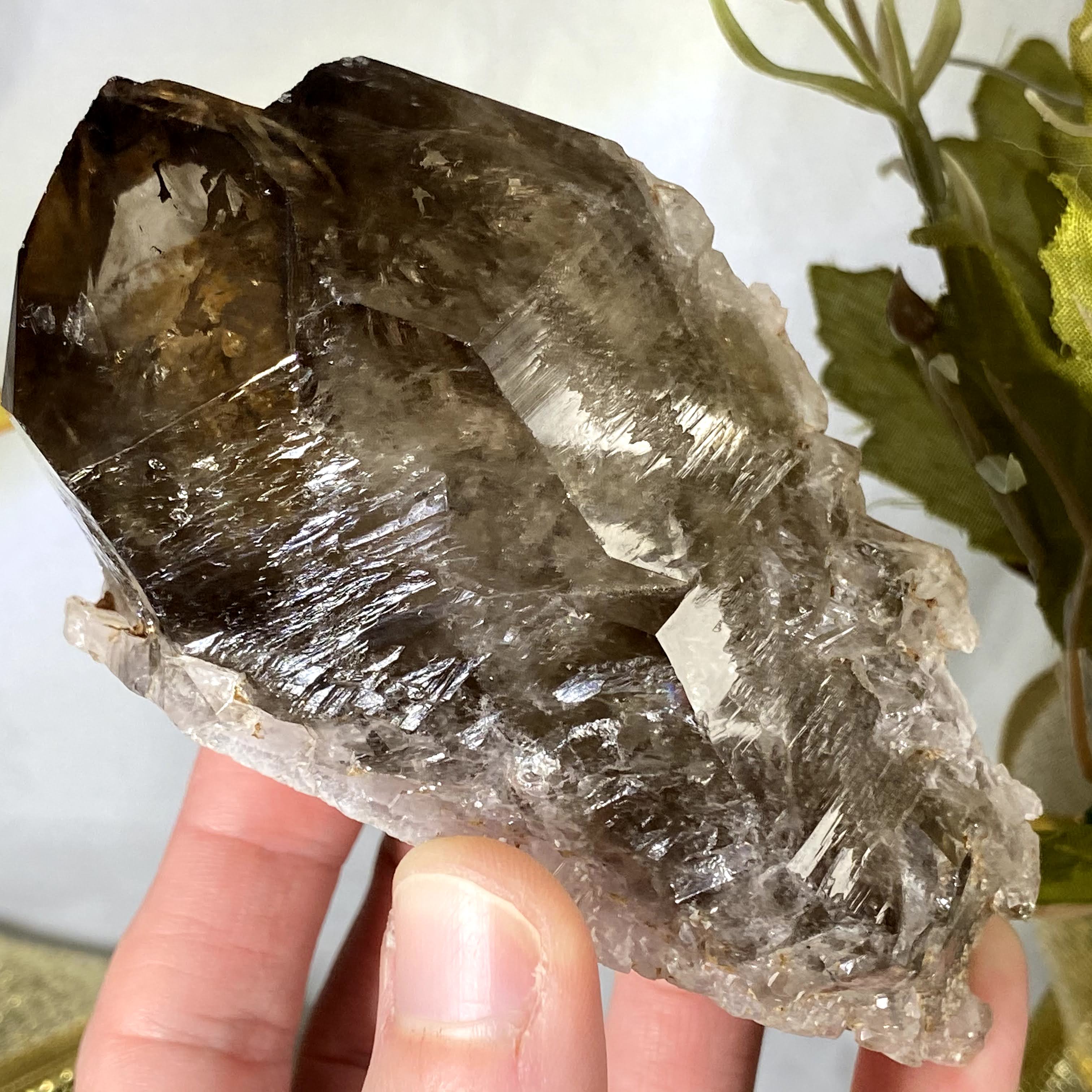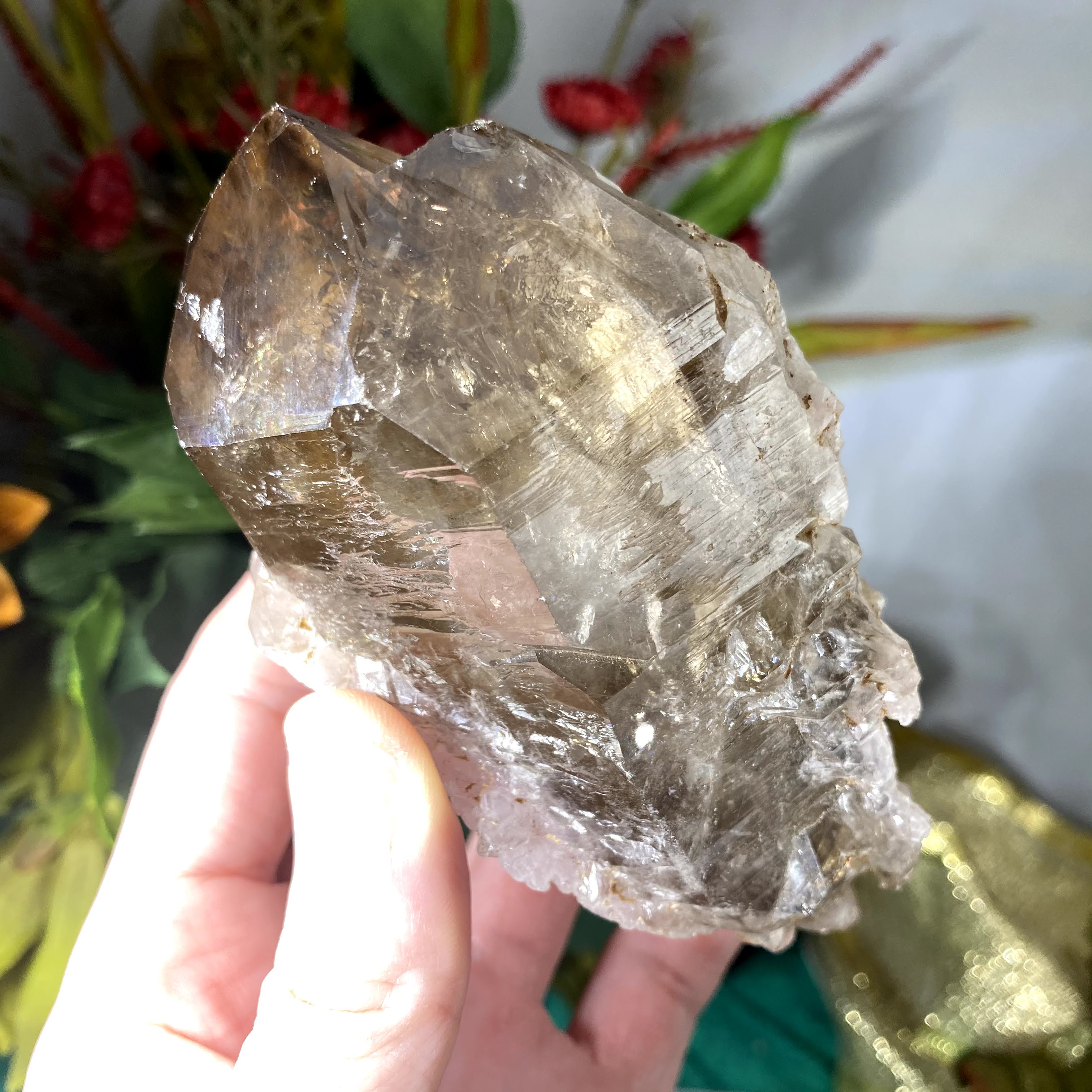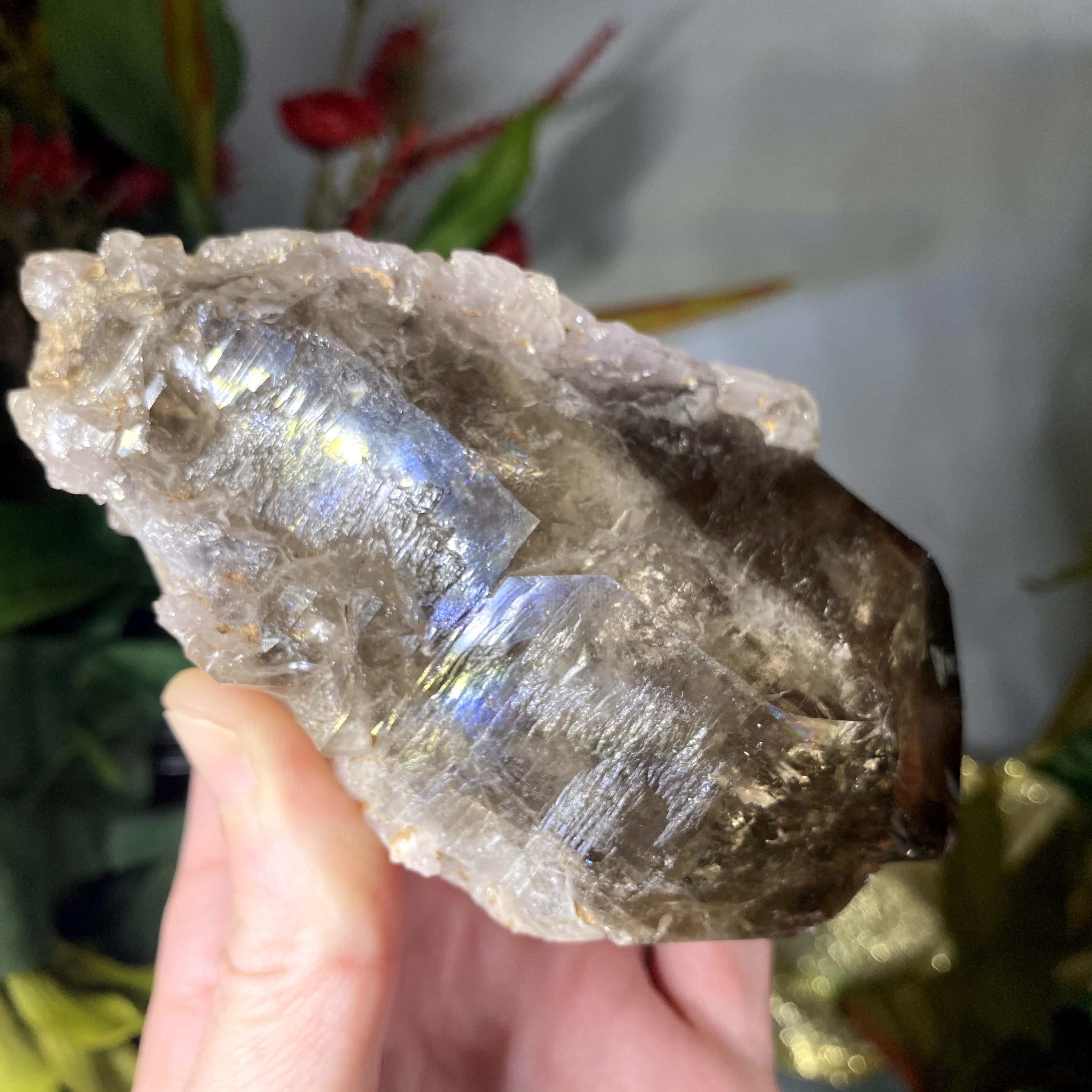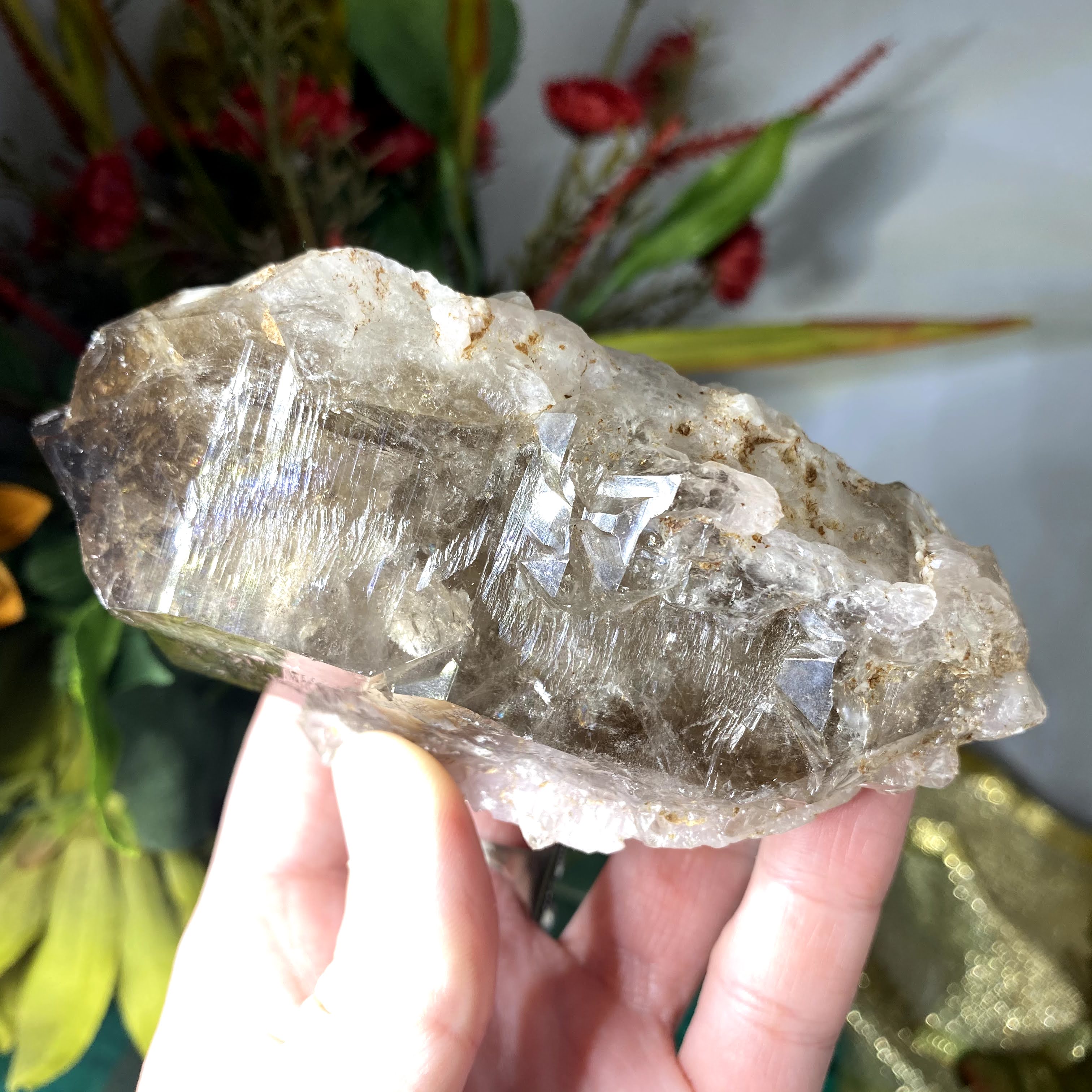 Well this hasn't been a favorite of mine in the shop for no reason, this beauty is not only GORGEOUS but also has so much to offer energetically! But oly moly is it a BEAUTY! This all natural smoky elestial, with etching, record keepers, rainbows, and light phantoms, is an absolutely incredible one and from Brazil.