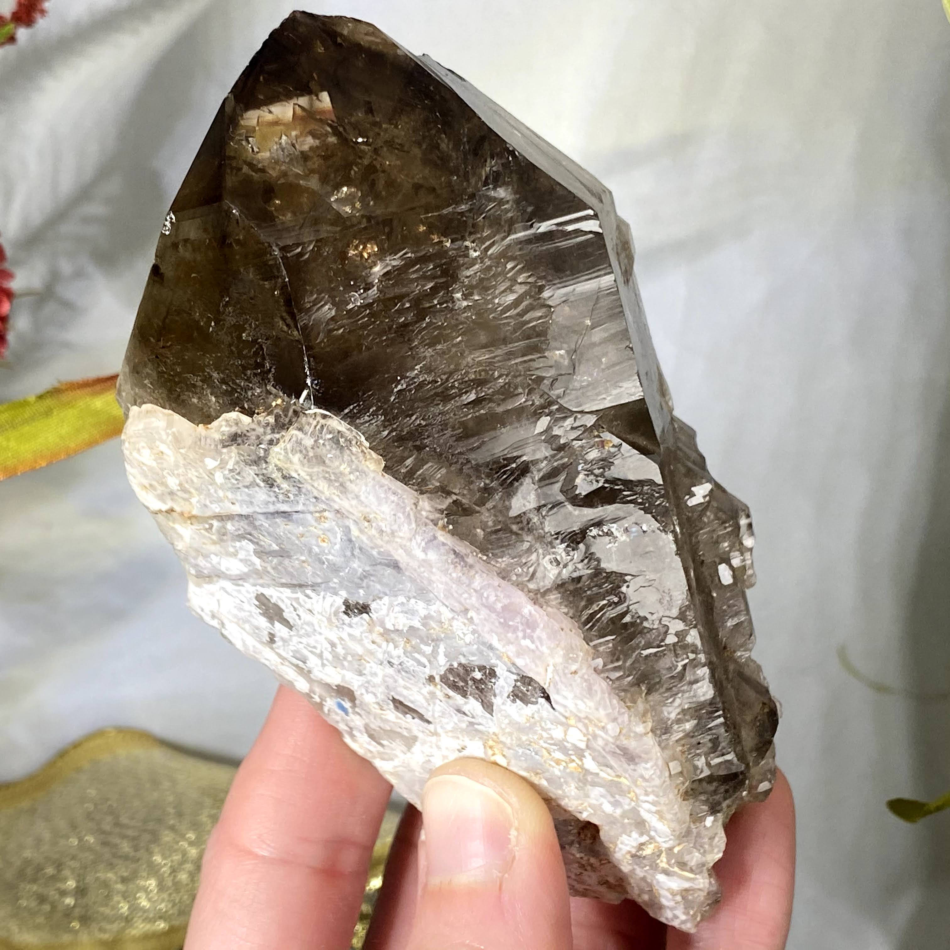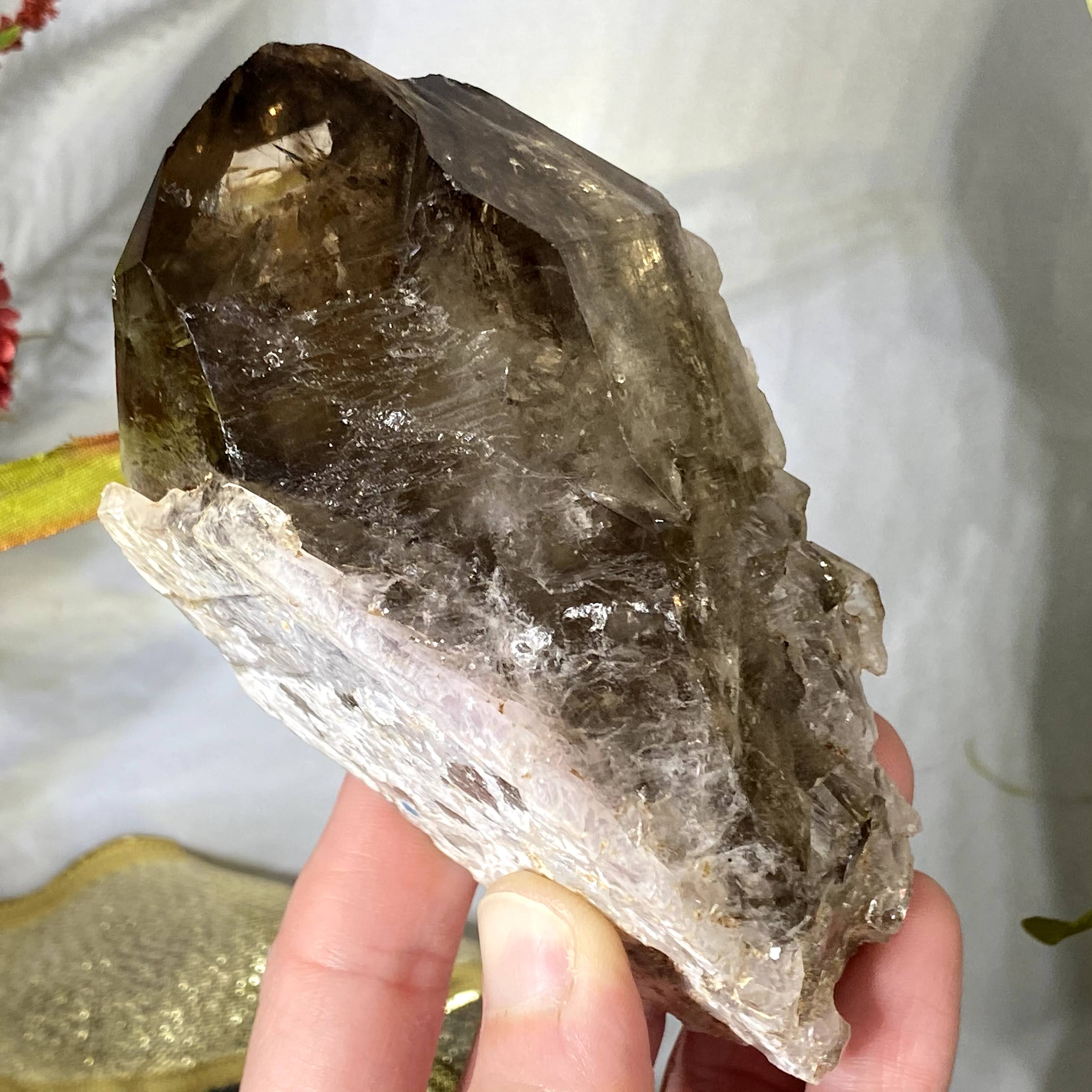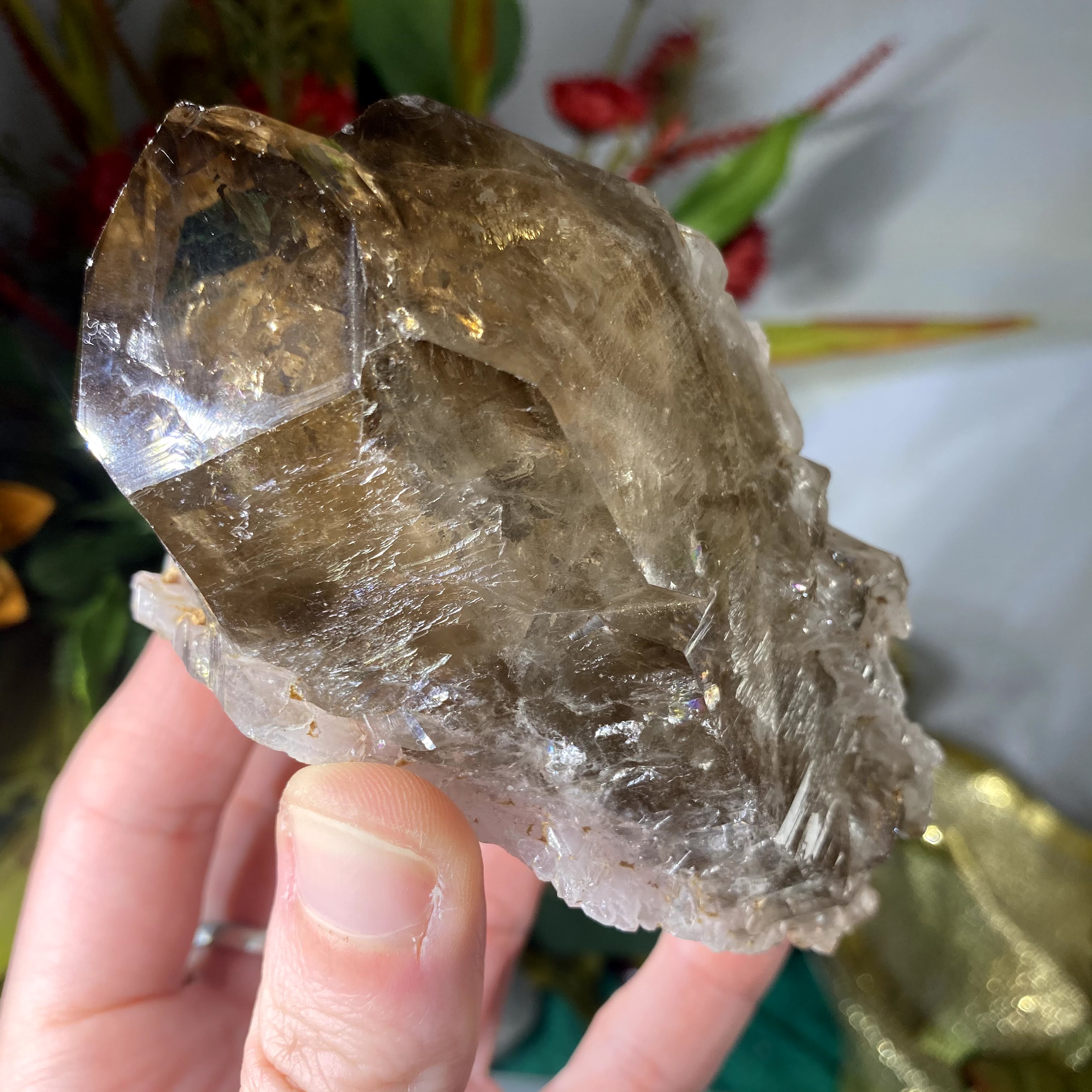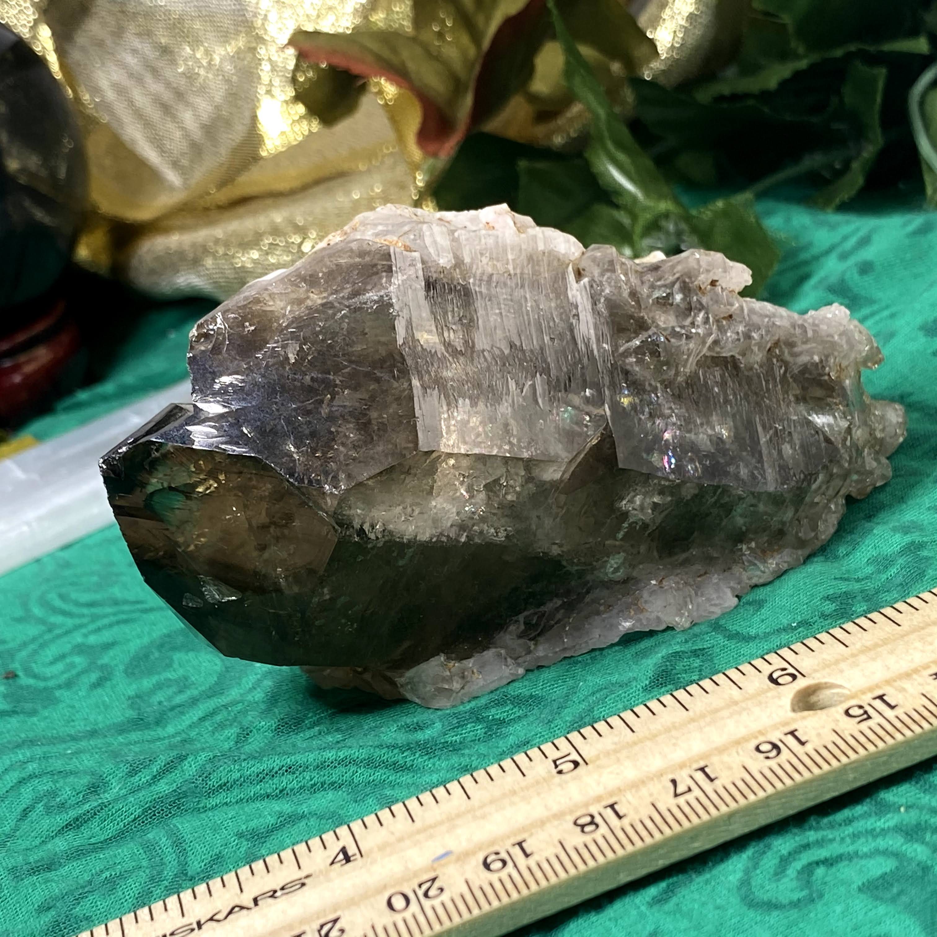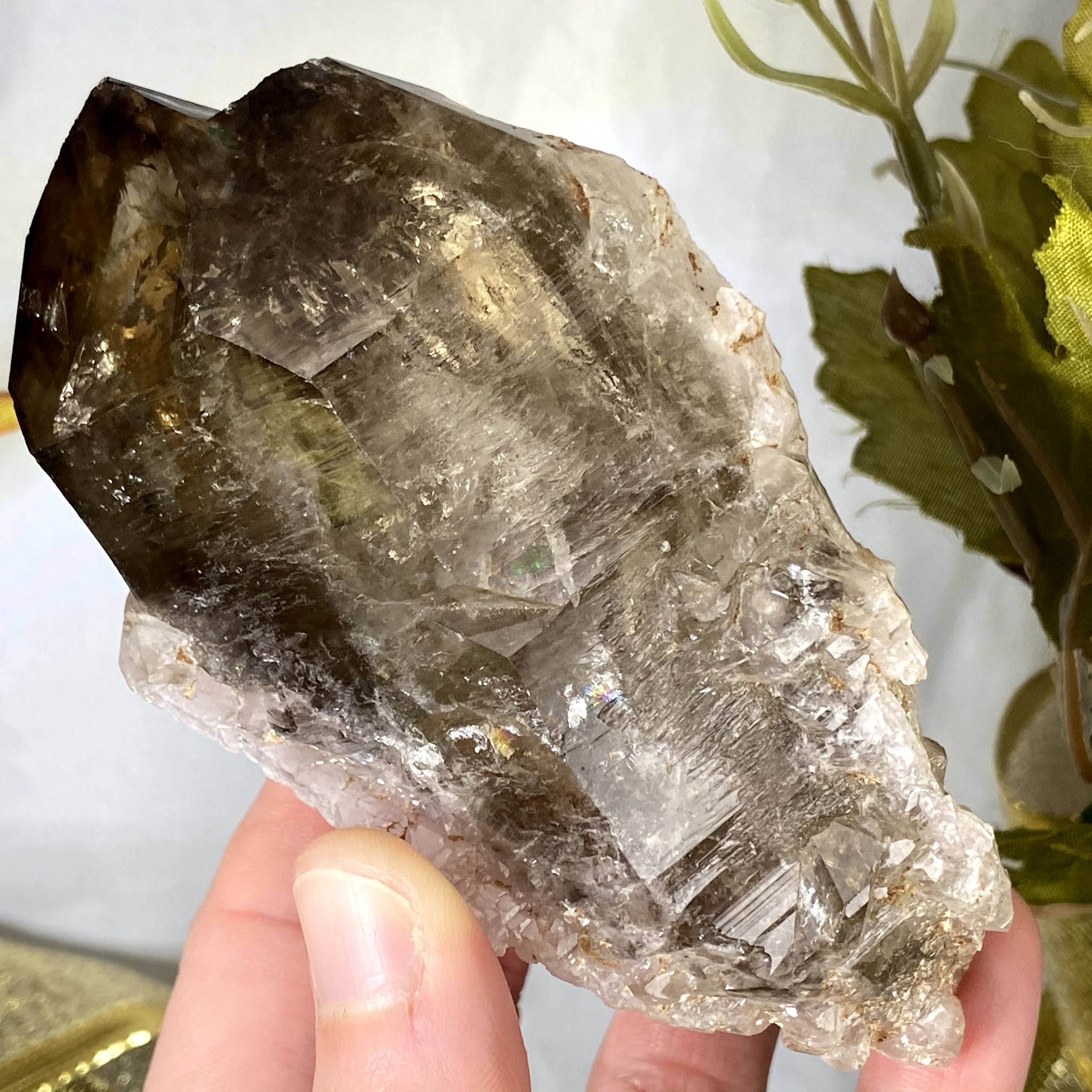 Well this hasn't been a favorite of mine in the shop for no reason, this beauty is not only GORGEOUS but also has so much to offer energetically! But oly moly is it a BEAUTY! This all natural smoky elestial, with etching, record keepers, rainbows, and light phantoms, is an absolutely incredible one and from Brazil.