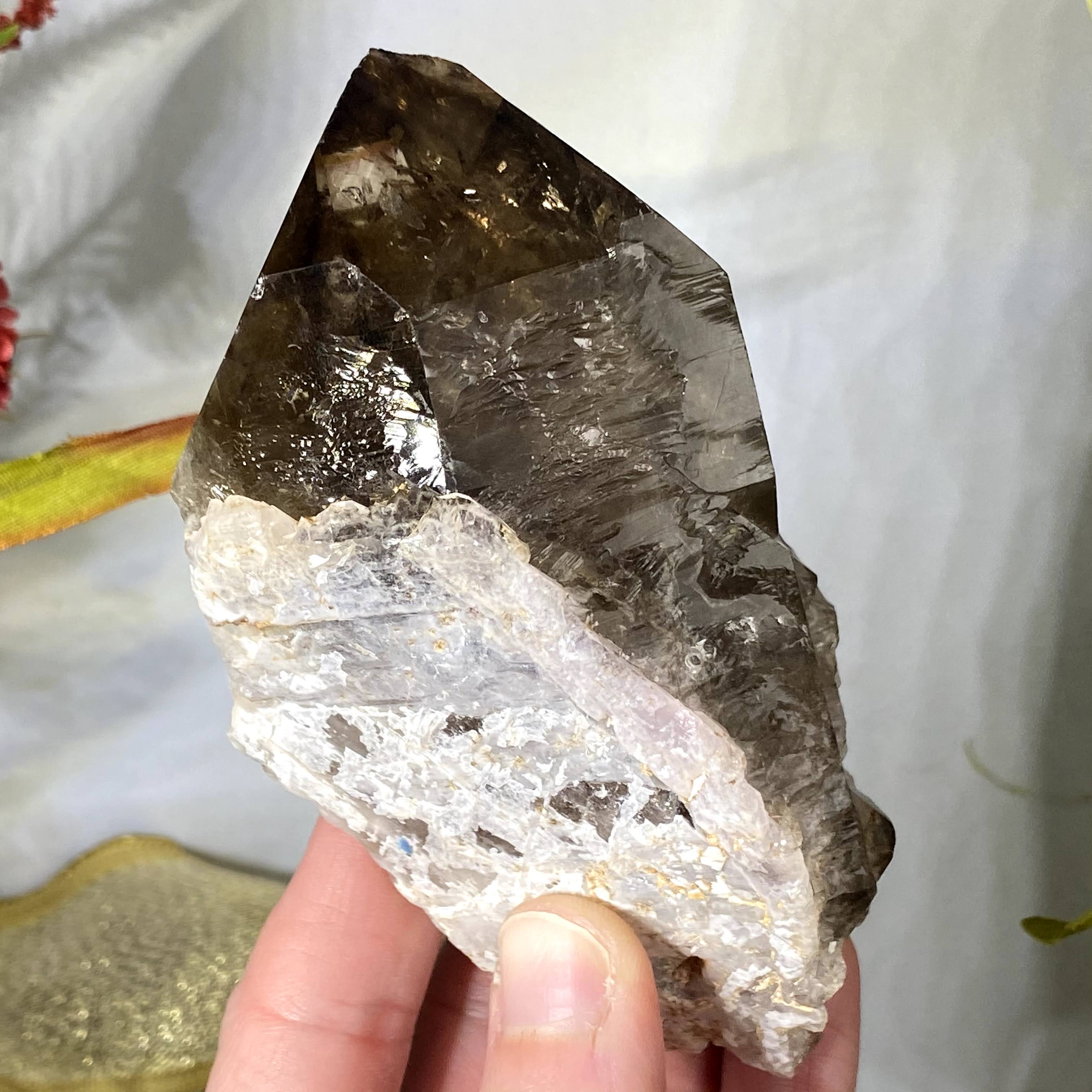 Smoky Quartz is a variety of quartz that ranges from a lightly tinted grey to a deep dark black.