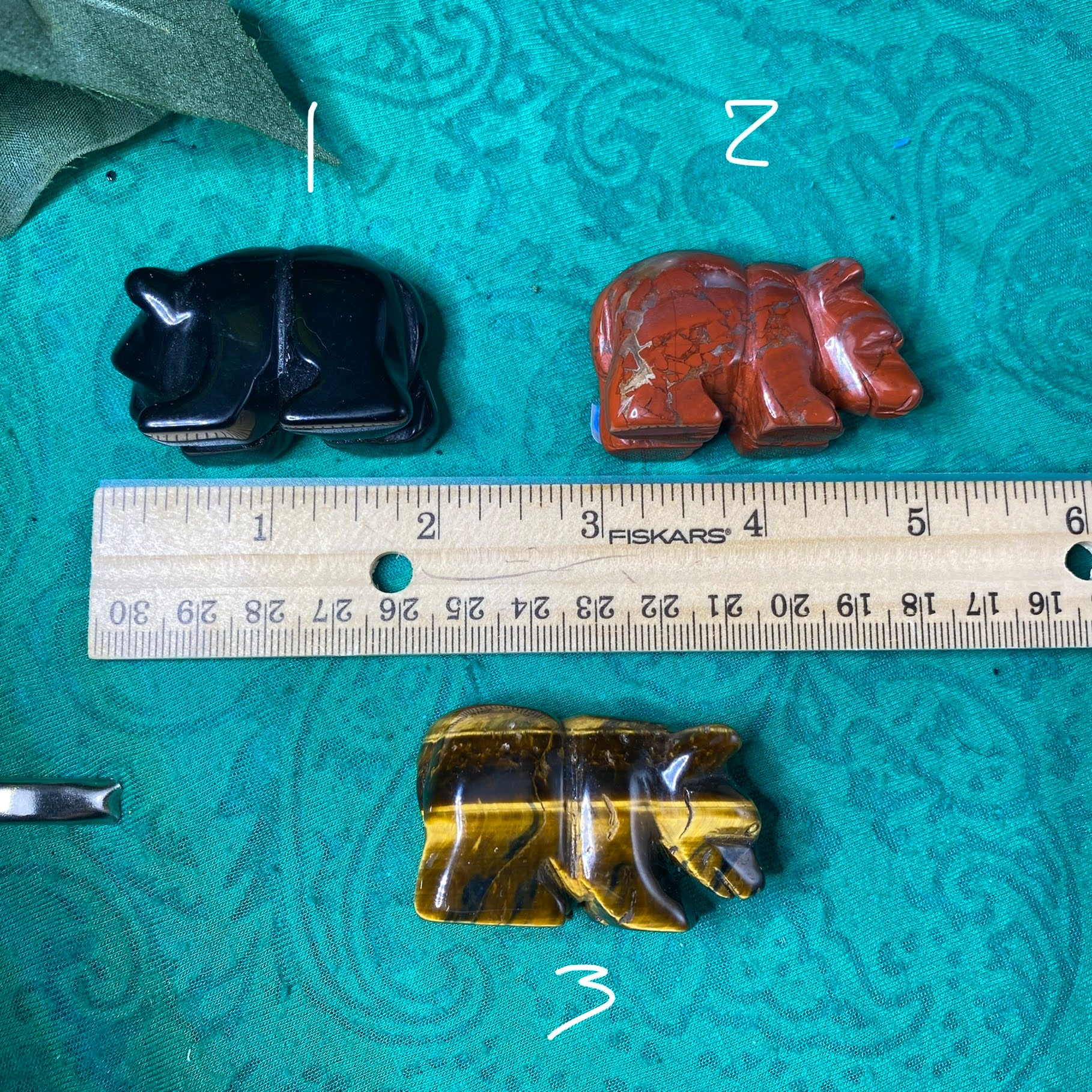 Crystal Bear Carvings! Obsidian, Red Jasper, or Tiger Eye Bear Carving! (price for one) C364/C363/C362