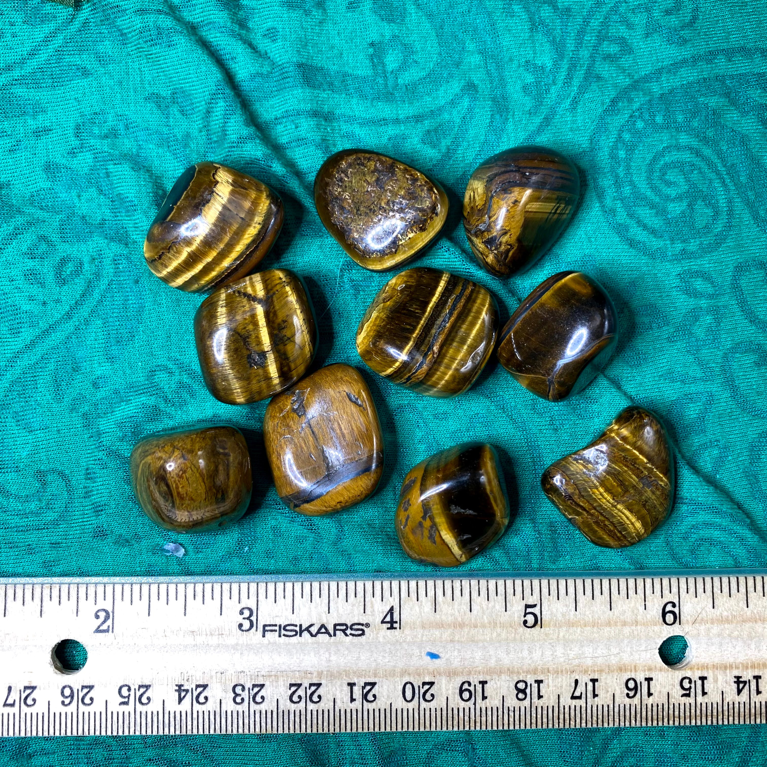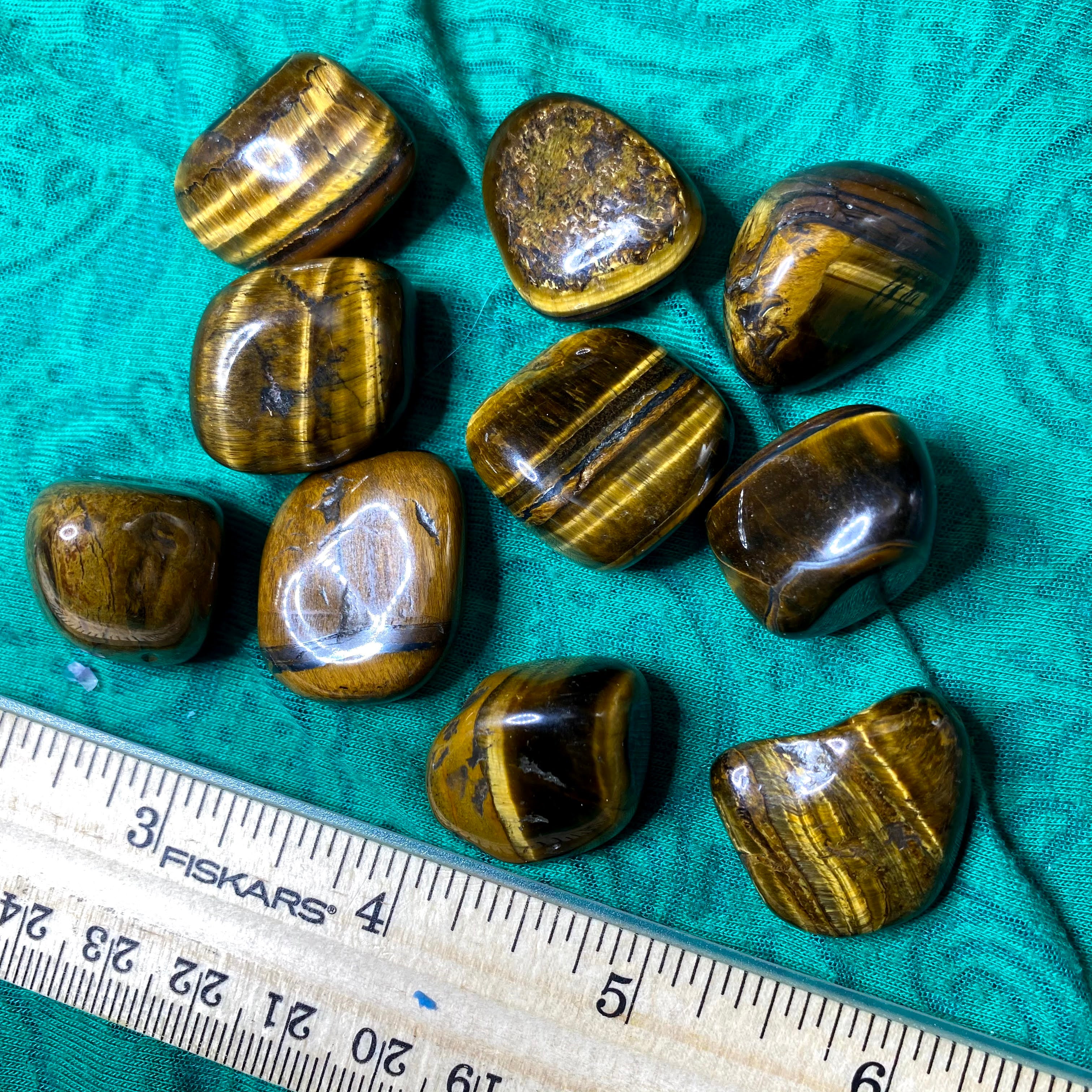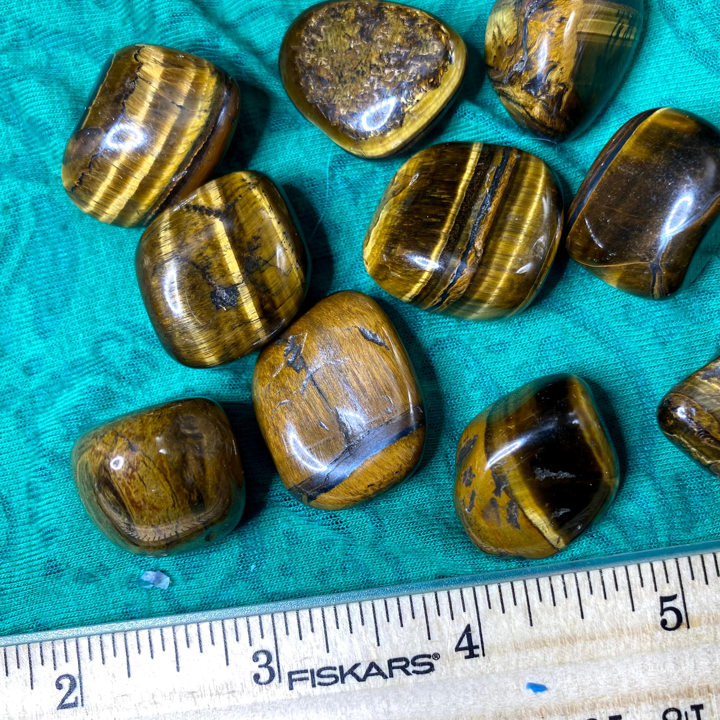 Super cool tiger eye tumbled stones! I love the wild flashes most of these have! Price is for ONE stone which will be pulled at random, but I'll ask my intuition to help! Please see image with ruler for size reference.