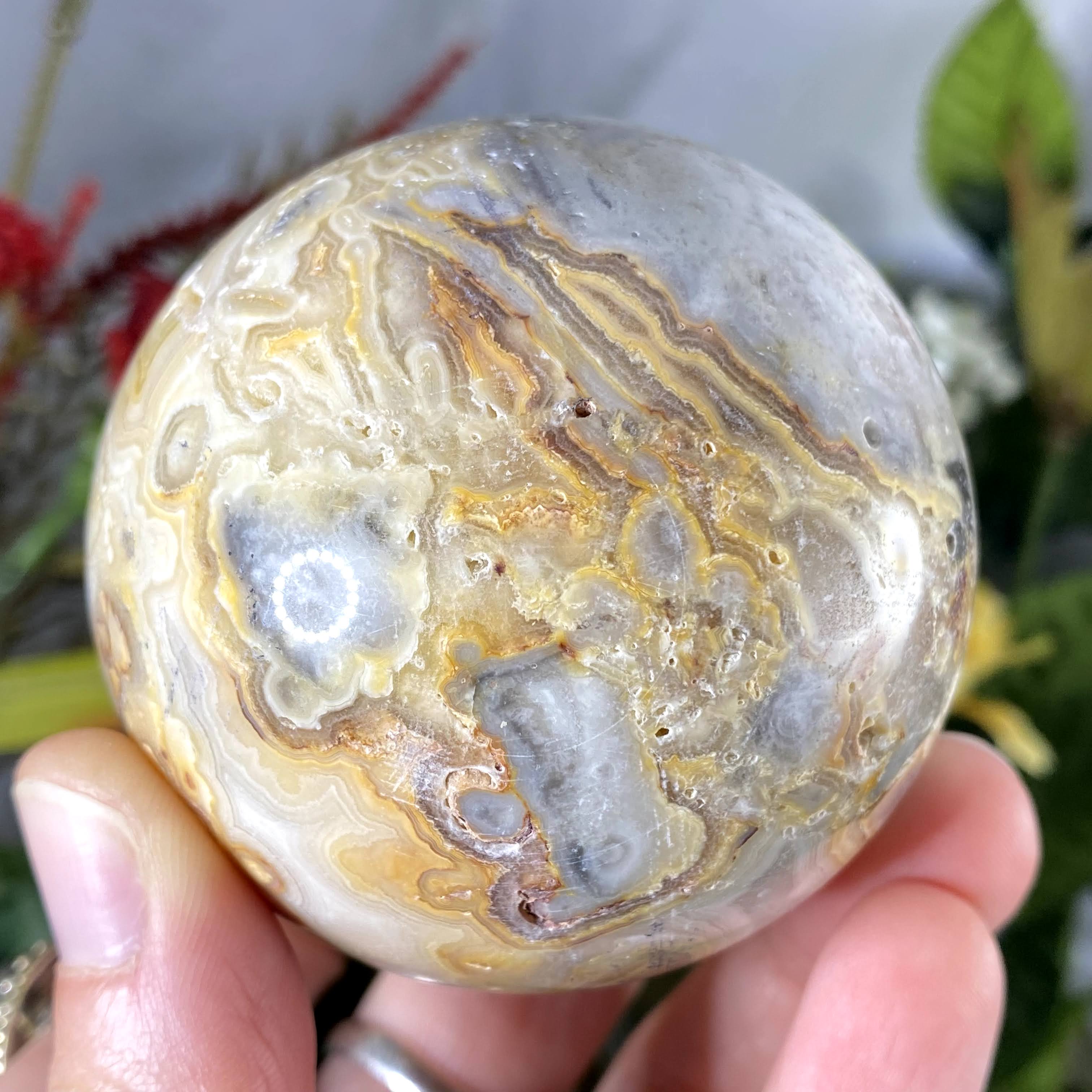 How hypnotizing this crazy lace agate sphere is!!! So many details to get lost in this Super beauty!