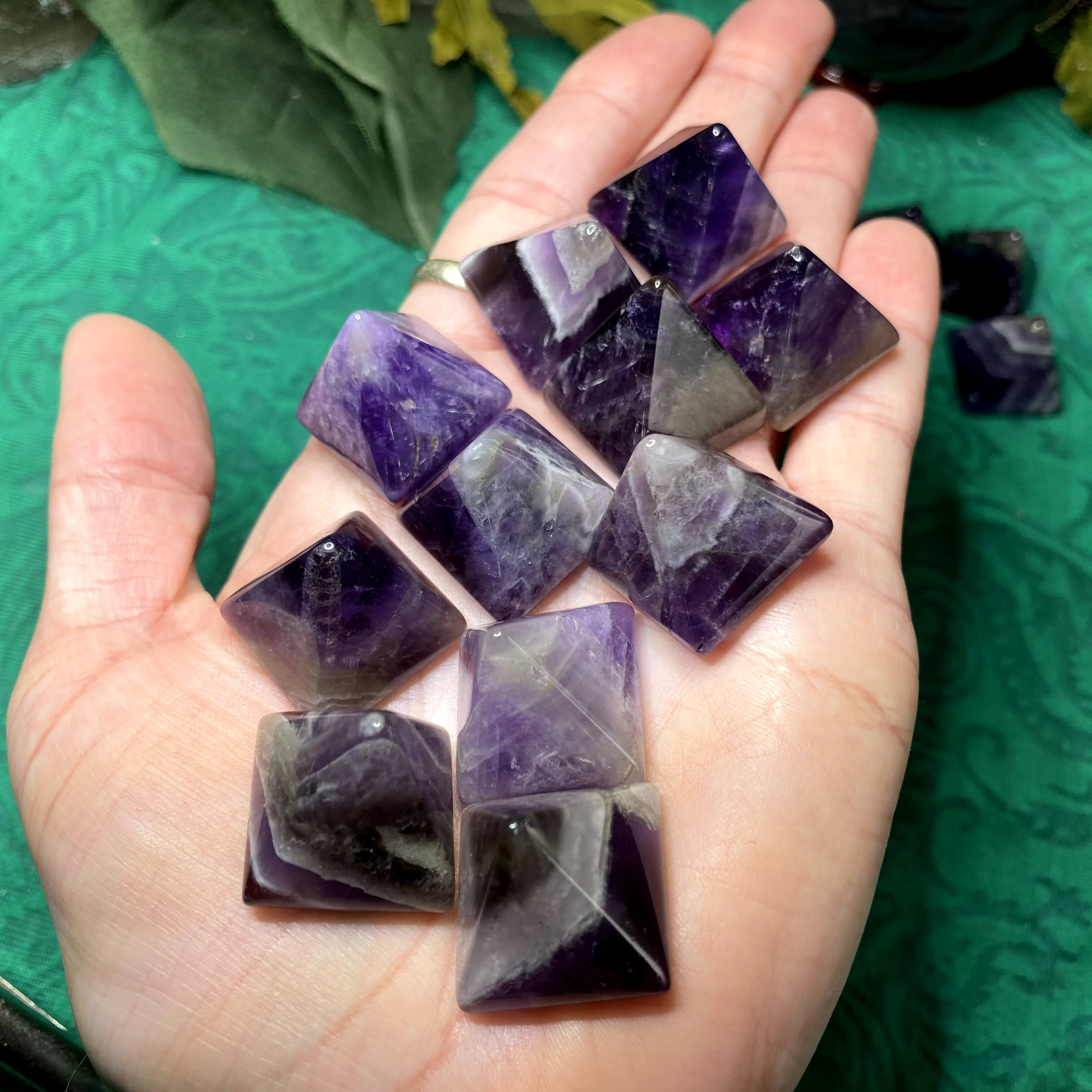 Ohh these are so precious! This listing is for the smallest size chevron amethyst pyramids. They are $4.25 each, or buy 4 get 2 free ($17, saves $8.50!). They will be random pull, but I'll ask my intuition to help! :D