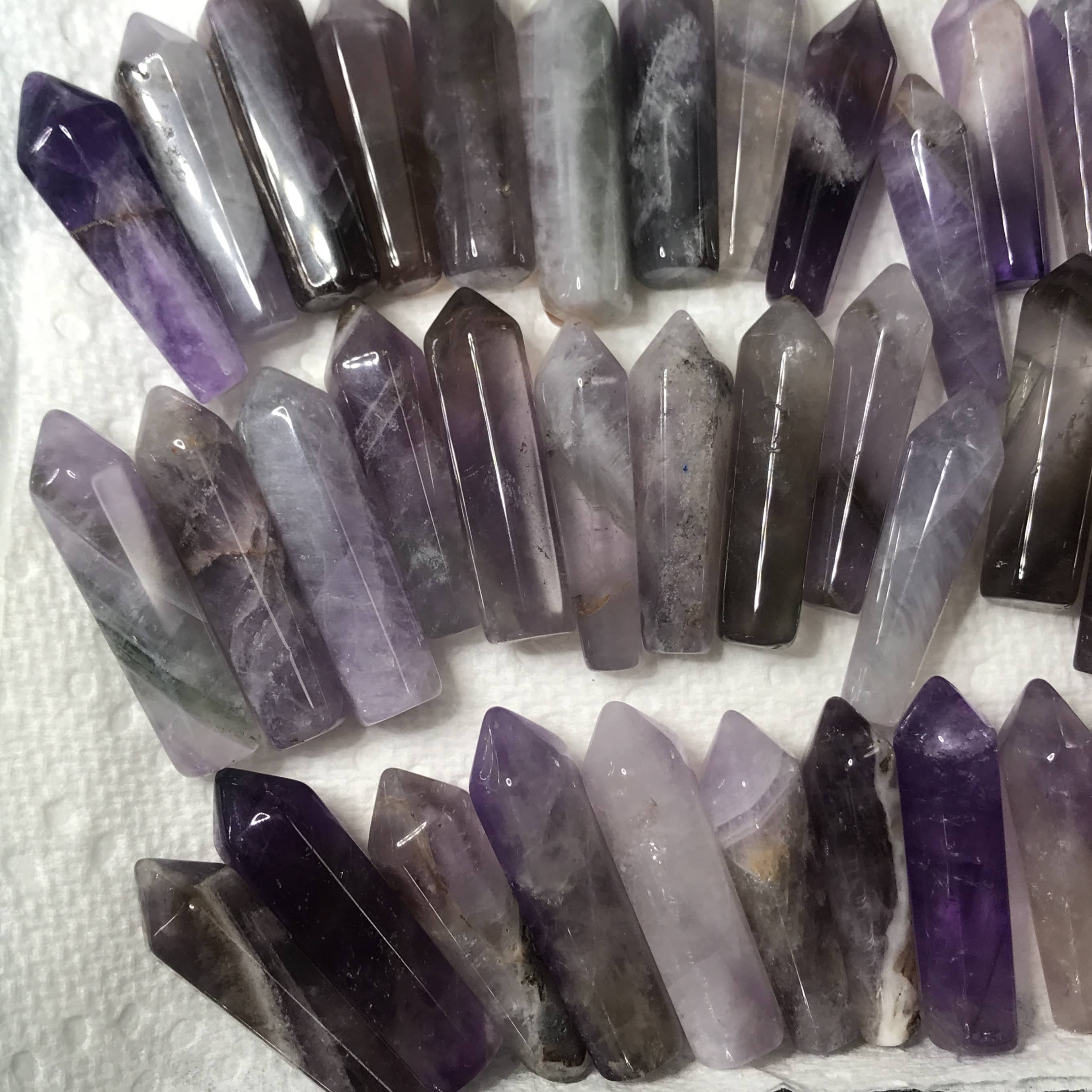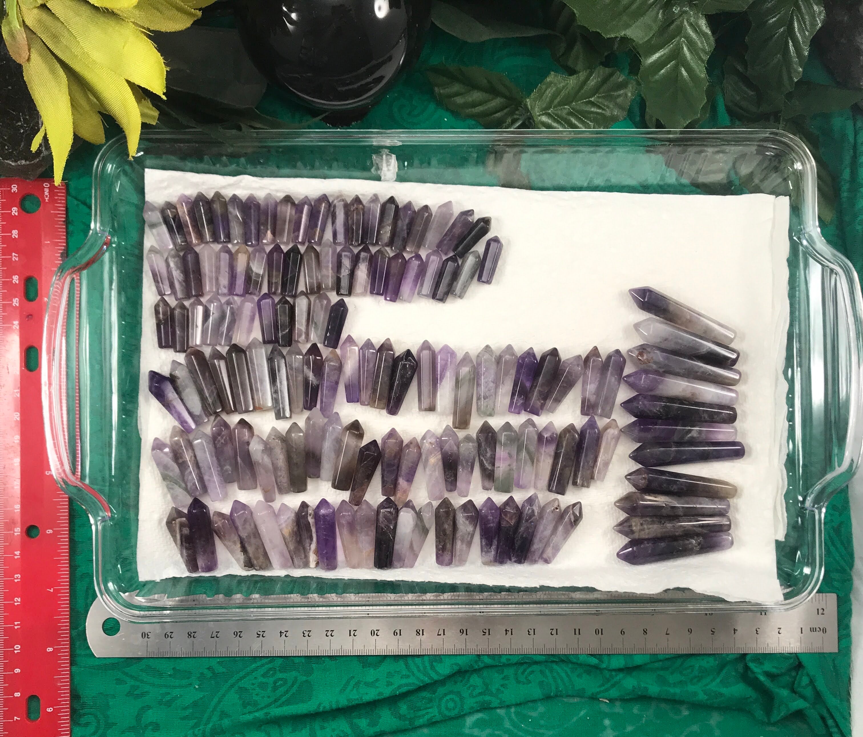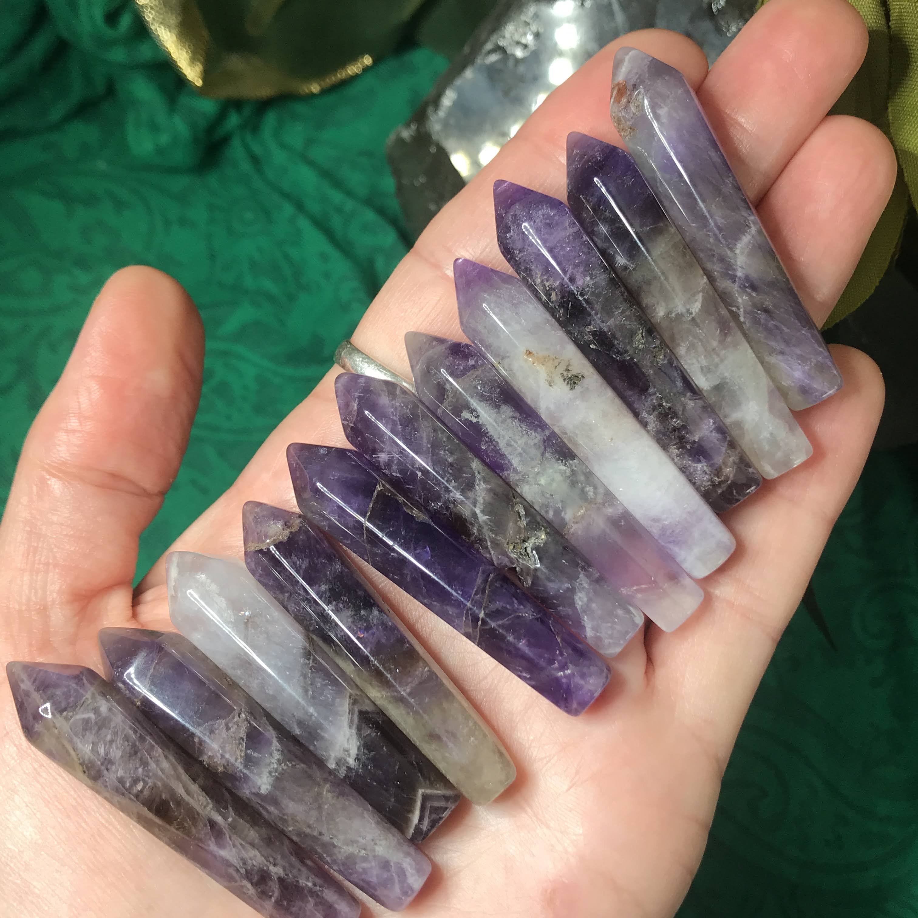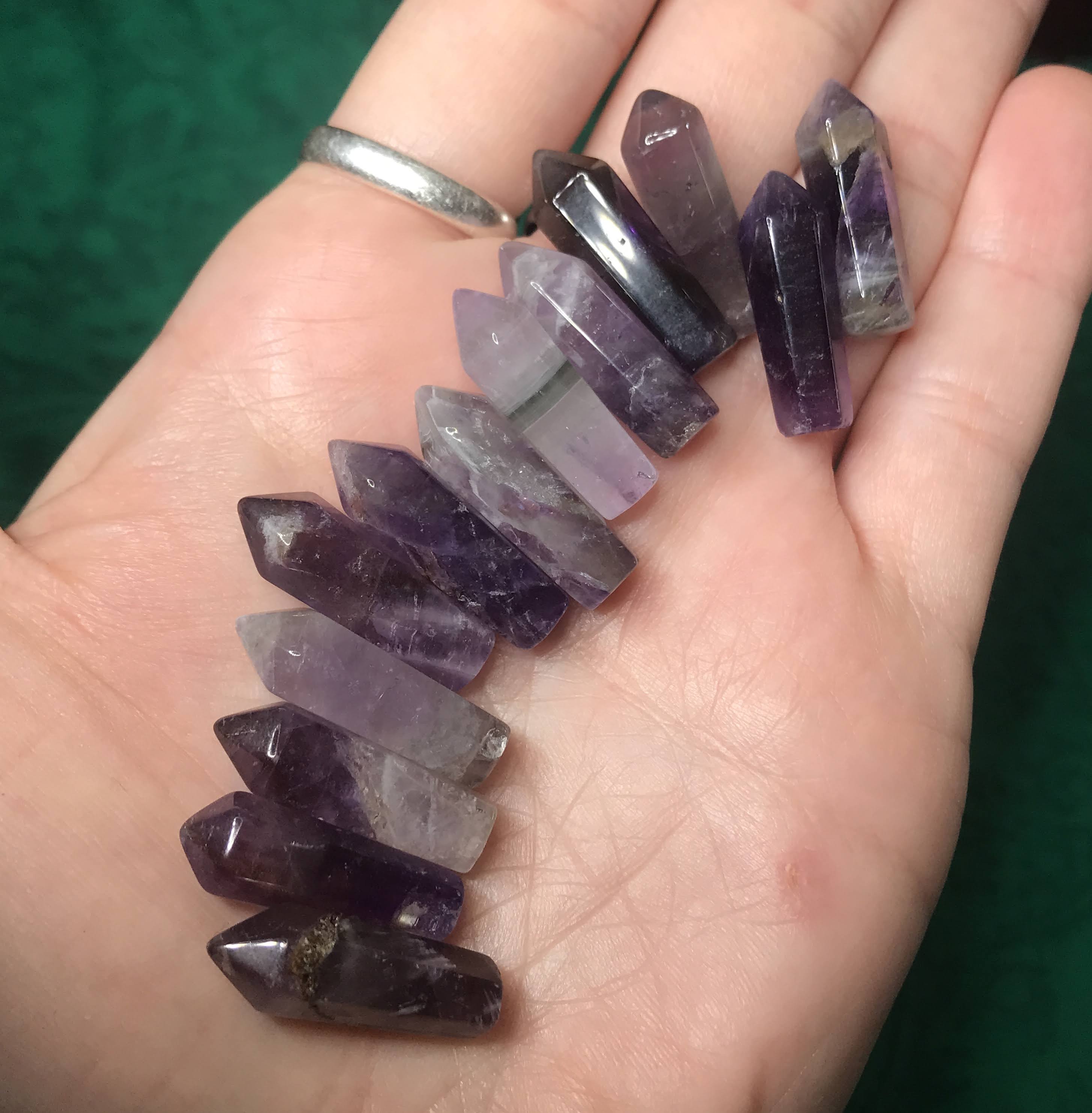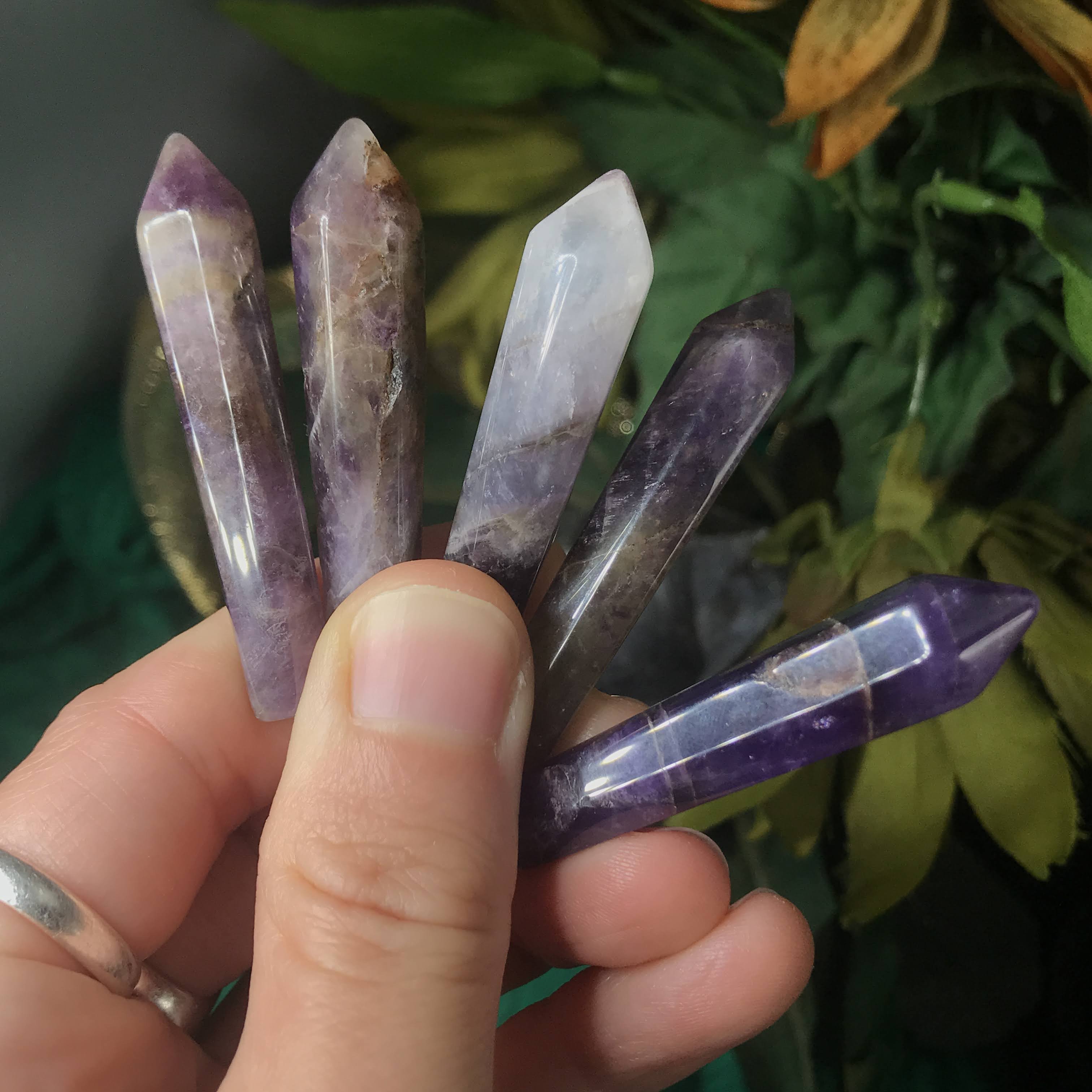 Super sweet and cute Amethyst and Chevron polished points /mini towers! Great for grids, pockets, jewelry, sneaking into a friends pocket, for your space, many things! You’re welcome to ask for a chevron one too and I’ll grab a more clearly noticeable chevron for ya💗