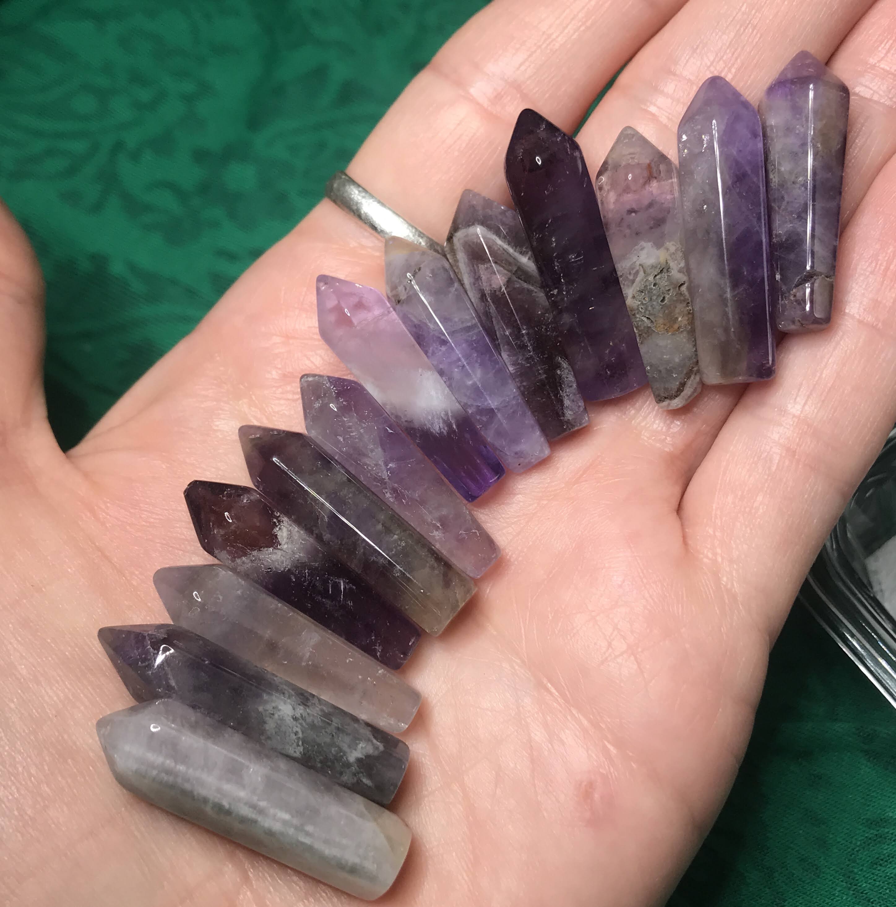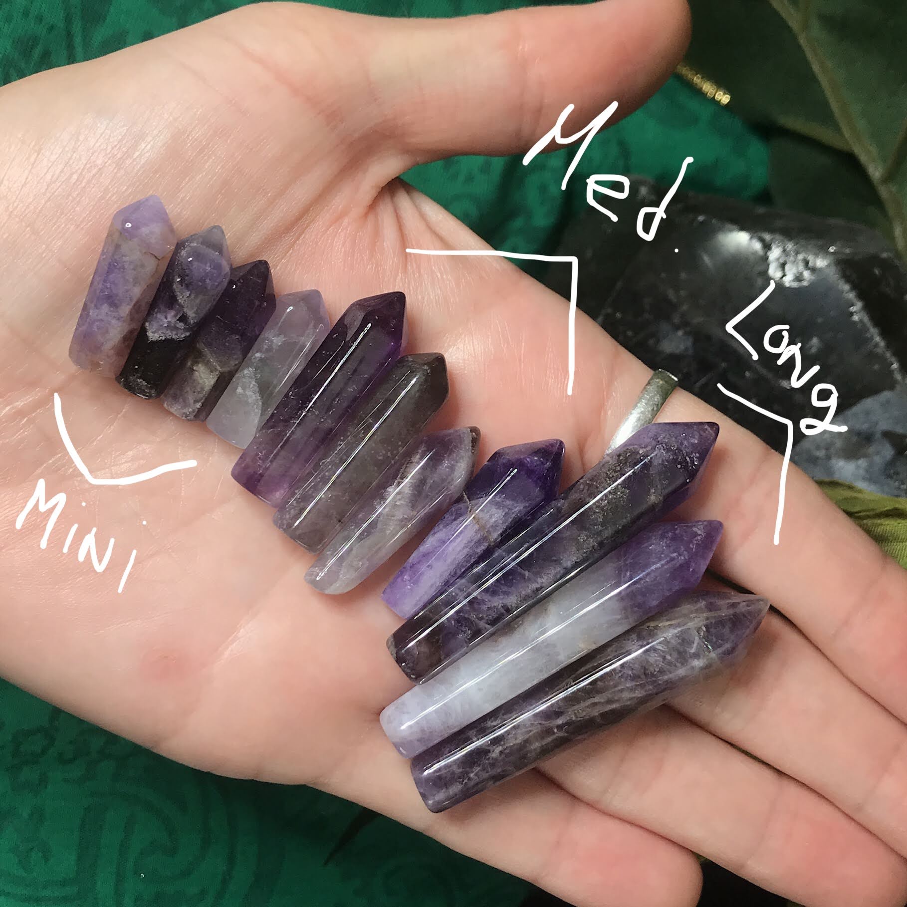 Amethyst is a variety of Quartz and ranges from a light blue-ish color, to deep dark purples, and varieties with hematite even appear pink! A stone of spirituality, contentment, and sobriety (not just from substances). It’s an EXCELLENT aid for meditation & cleansing and purifying one's energy field. One of my personal favorites to enter a meditation i call an “Amethyst Bath”. When I am too depleted to cleanse & move energy in my field with Reiki, my hands, and crystals together, I simply lay down with a piece of Amethyst on each chakra (& wherever I feel needed), a point in each hand (left hand, point facing towards my upper half. Right hand, point facing my feet) put on some good sounds, and allow the amethyst to move the energy & cleanse. IT IS SO REFRESHING!!! It feels like, for me, a big ole cozy divine energy bath, washing away and releasing some heavy energy & attachments, bringing in some soothing uplifting high vibrations. It is an excellent crystal for taking those super low vibrations & dysfunctional energies, stabilizing & transmuting them into higher frequencies, clearing the aura. Stilling & calming the mind for ease of a deep peaceful meditative state, allowing one to experience clarity & connection to the divine.