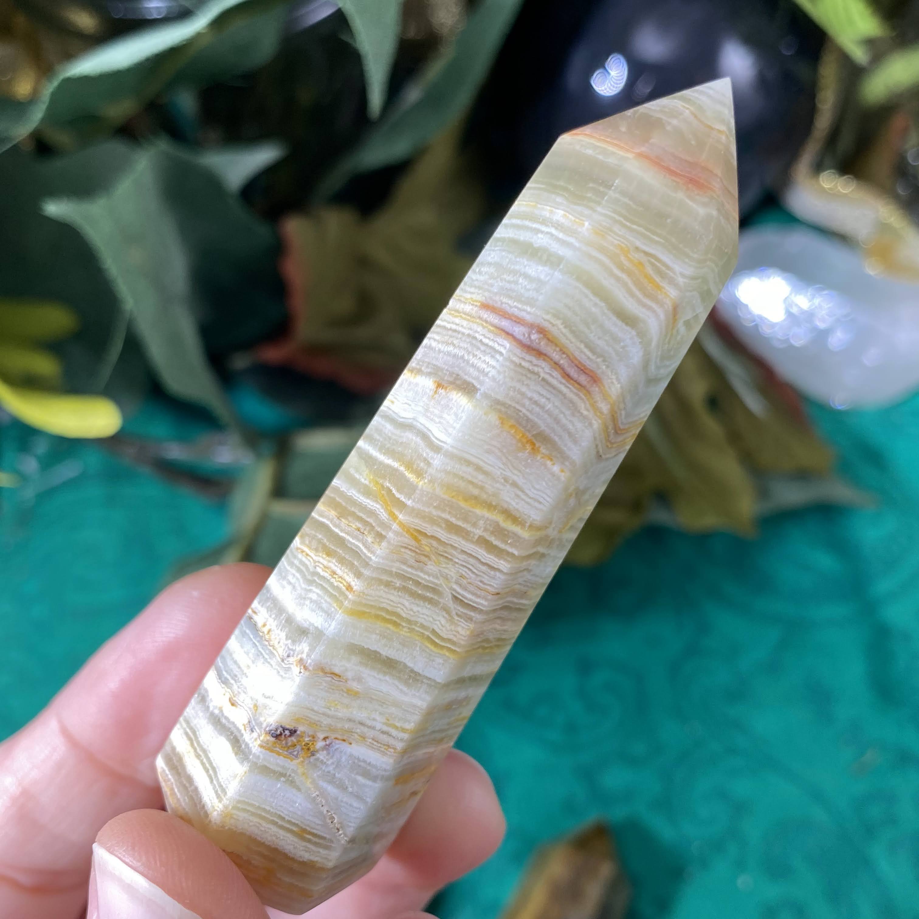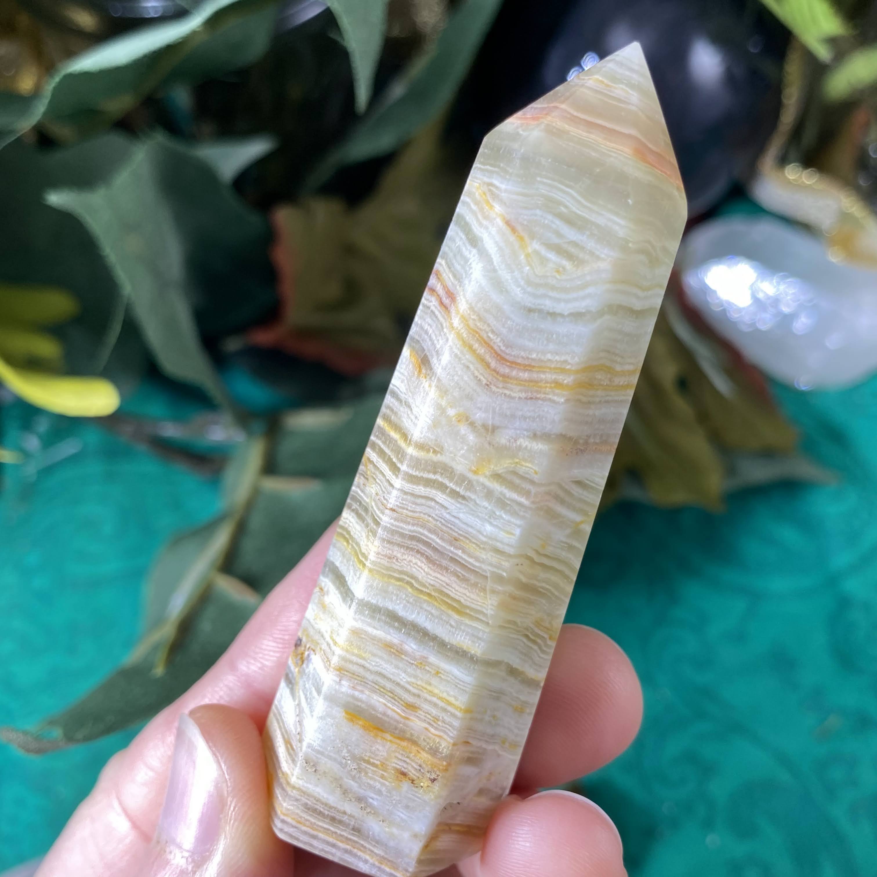 1-Banded Green Calcite (Green calcite for the heart! With the other colors in this one I wouldn’t be surprised if it also vibed with any of the lower chakras too)