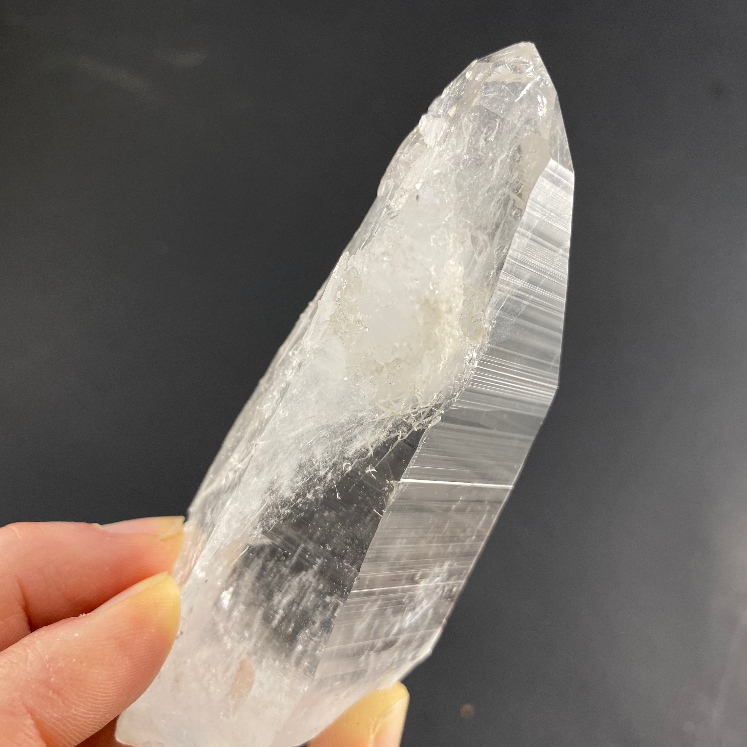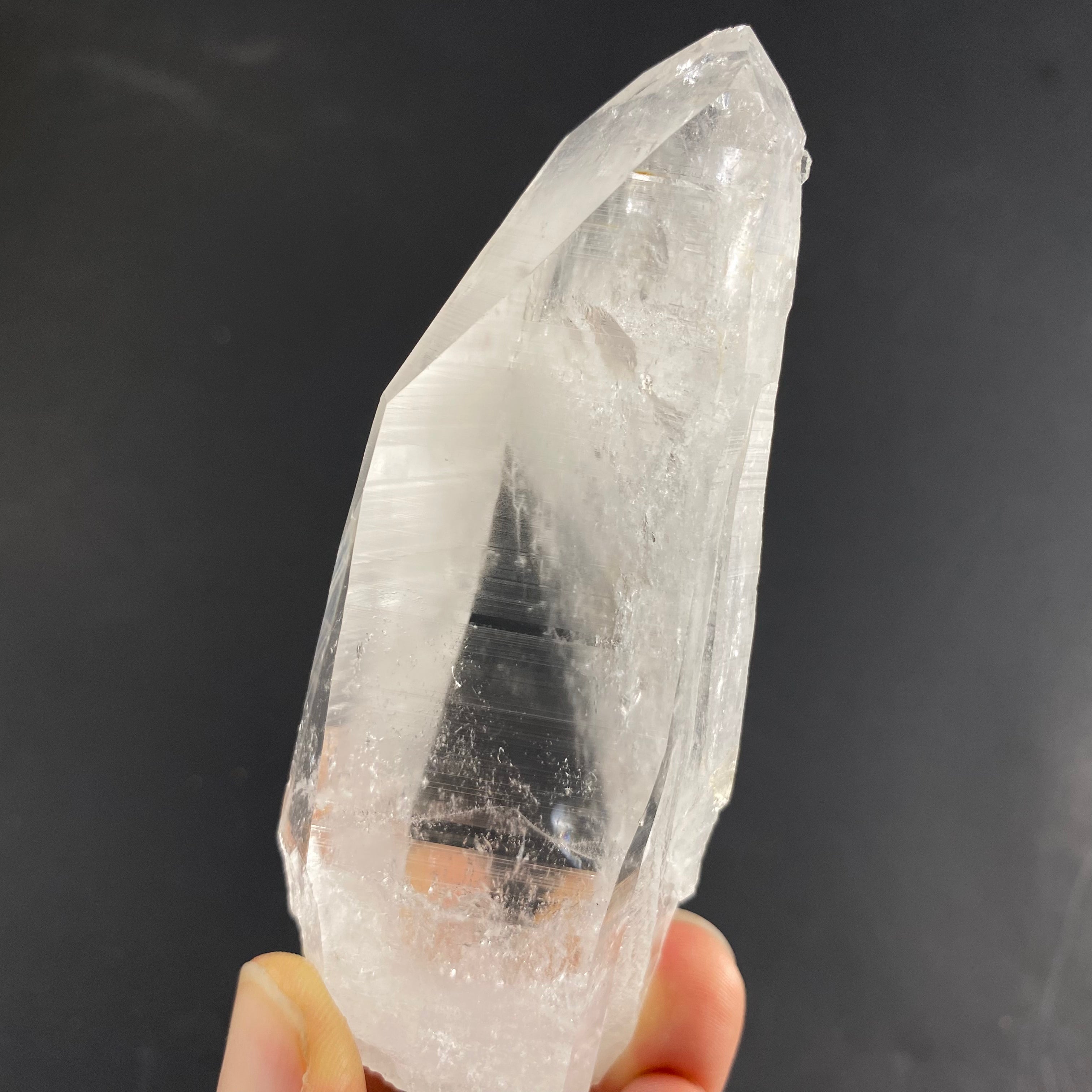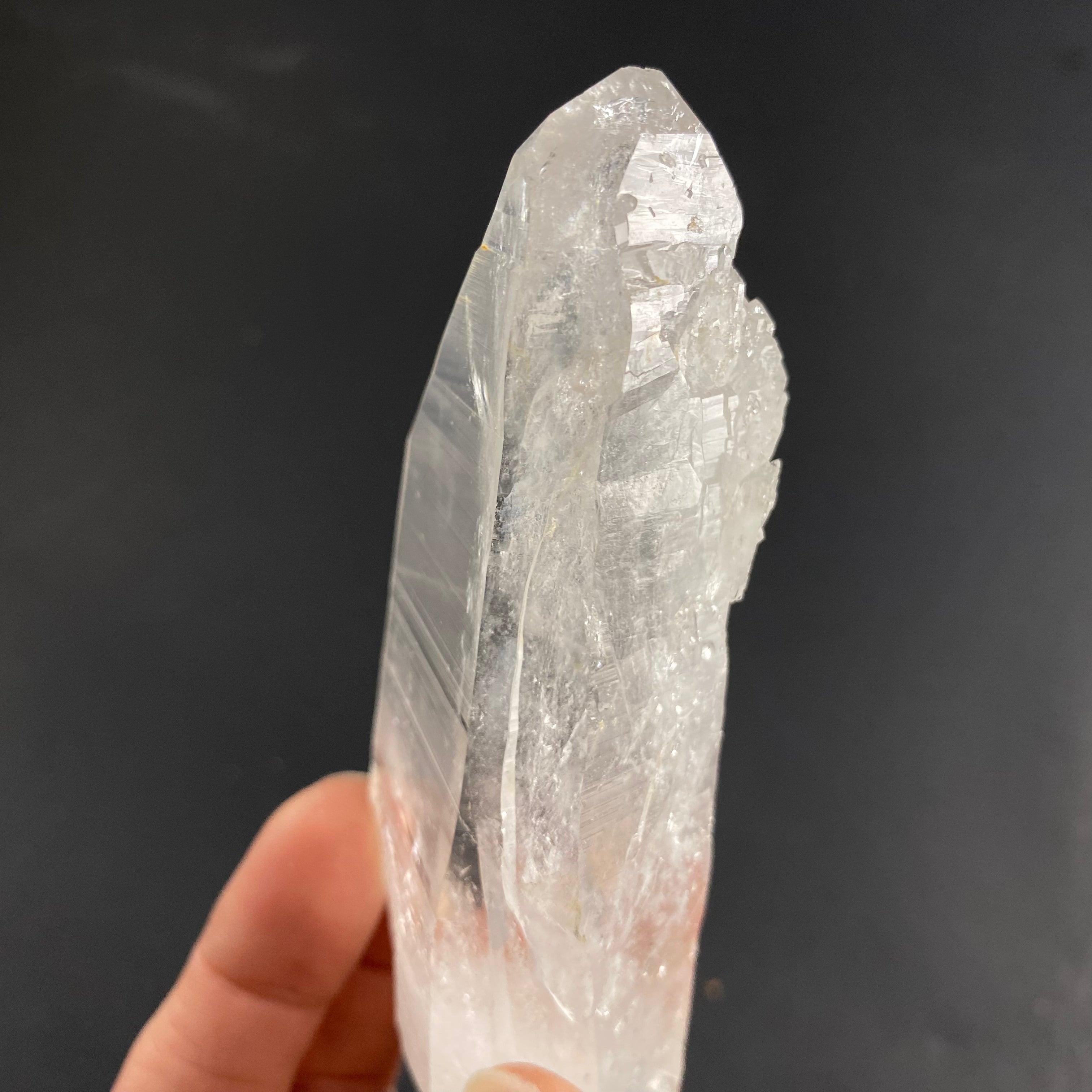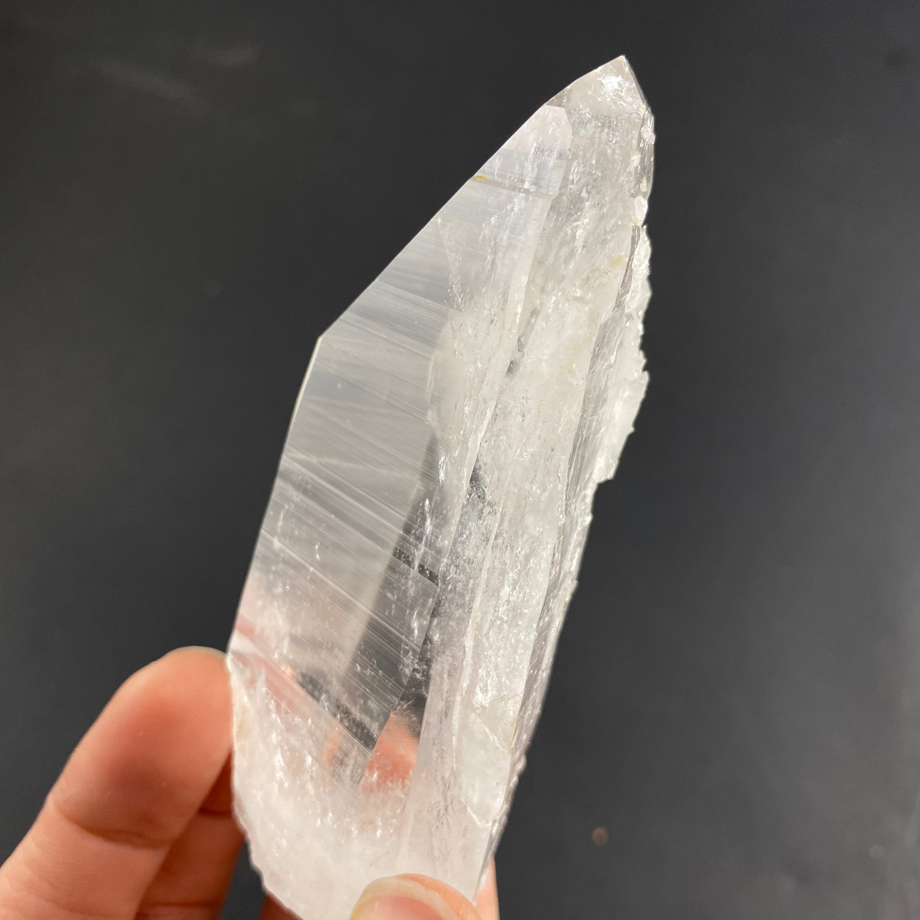 Colombian quartz are said to be among the highest vibrations when it comes to quartz, I especially feel it in the super clear ones. Most have heavy striations (that look like codes) on the crystals sides and are said to be a part of the “Lemurian” family or “Blades of Light”. I’d like to note that there are different views within the crystal and mineral community regarding the identifying features of these stones (basically, there is no agreed upon industry standard as to what defines a Lemurian quartz). That being said, I have observed the following characteristics in this batch of stones: incredible clarity, striated faces on all or most sides, a prismatic effect, quite a high vibration/energy, and seem to carry a lot of information.