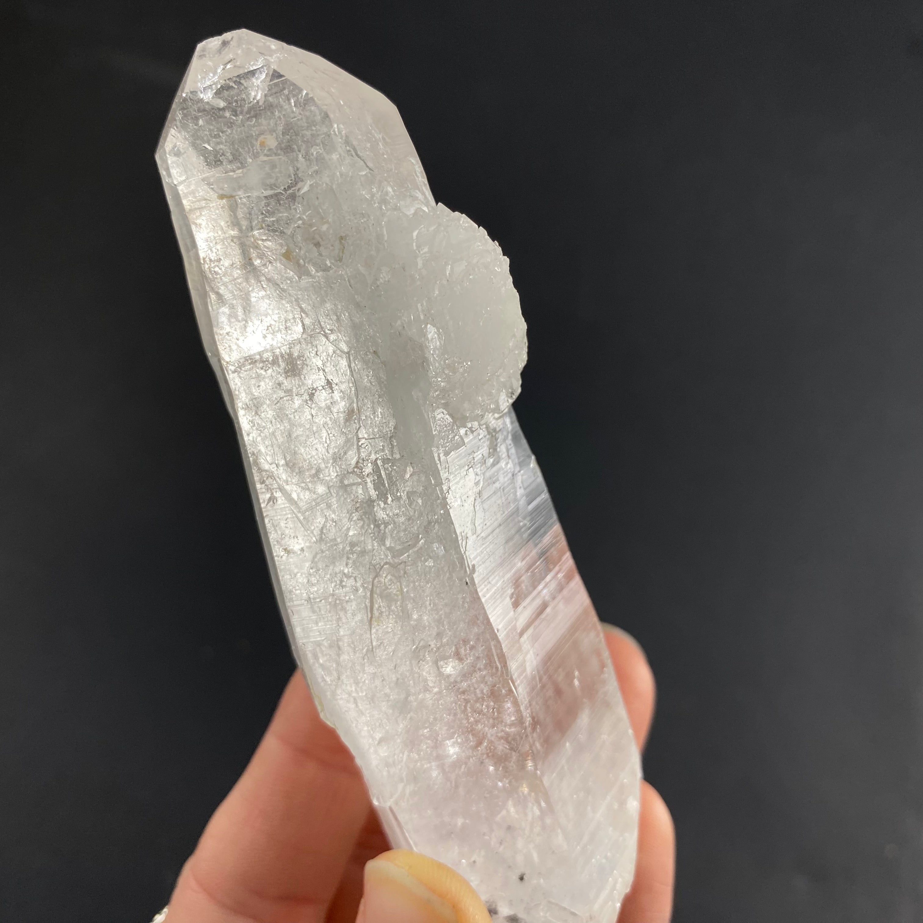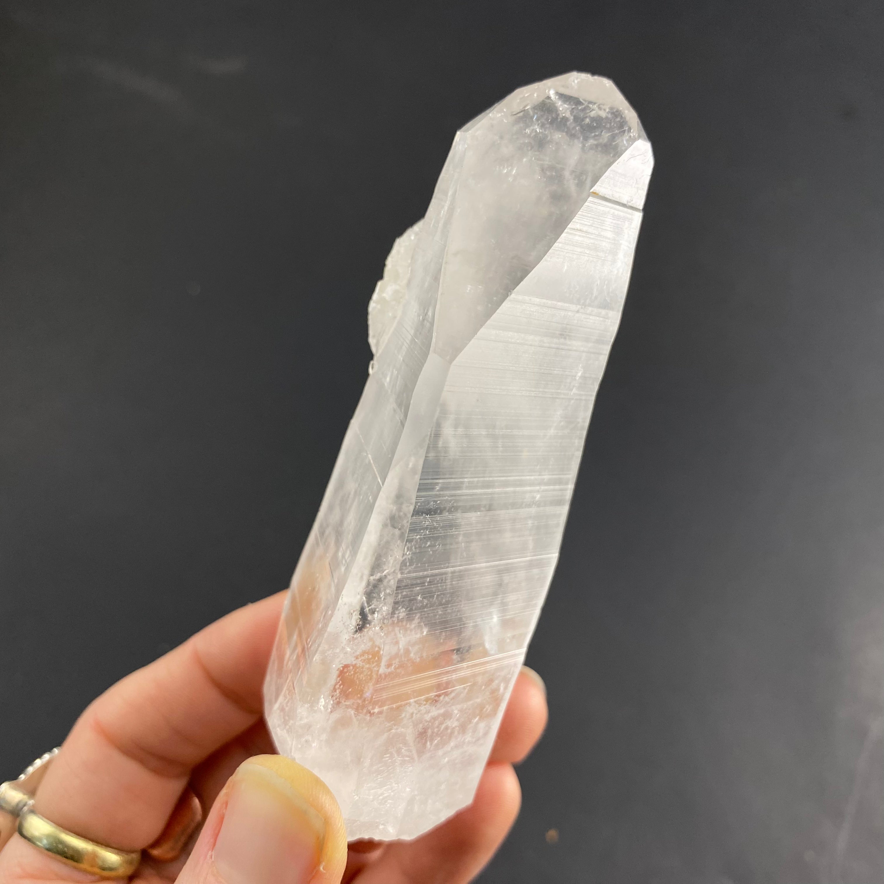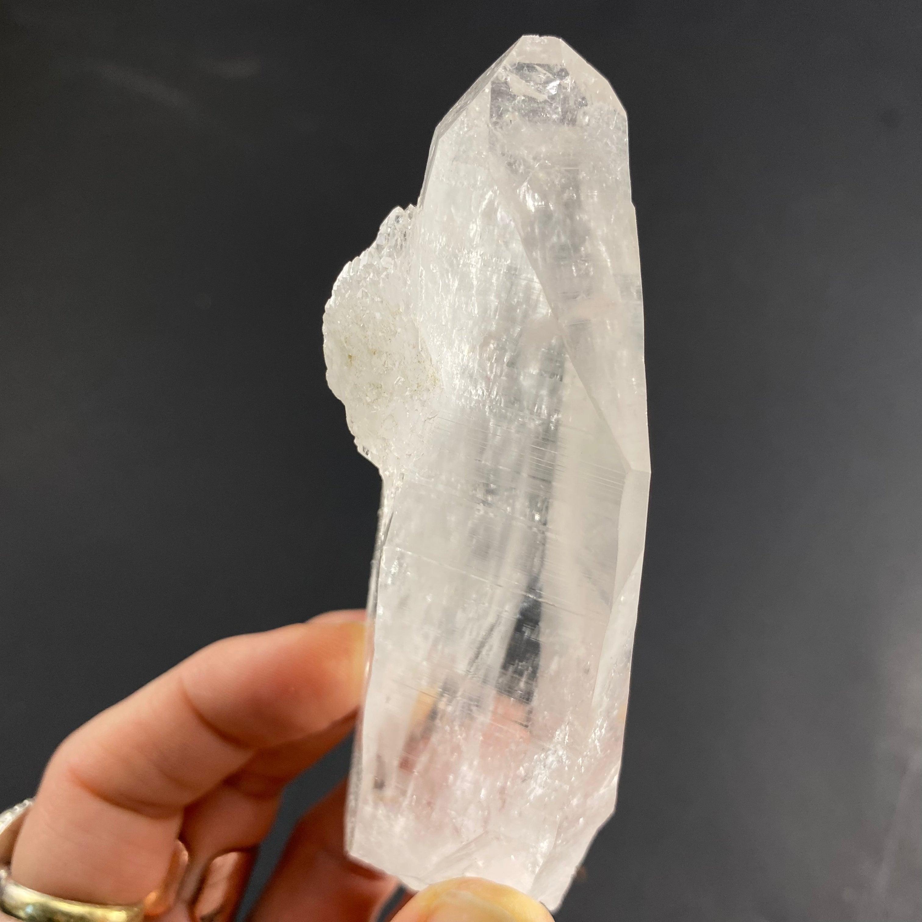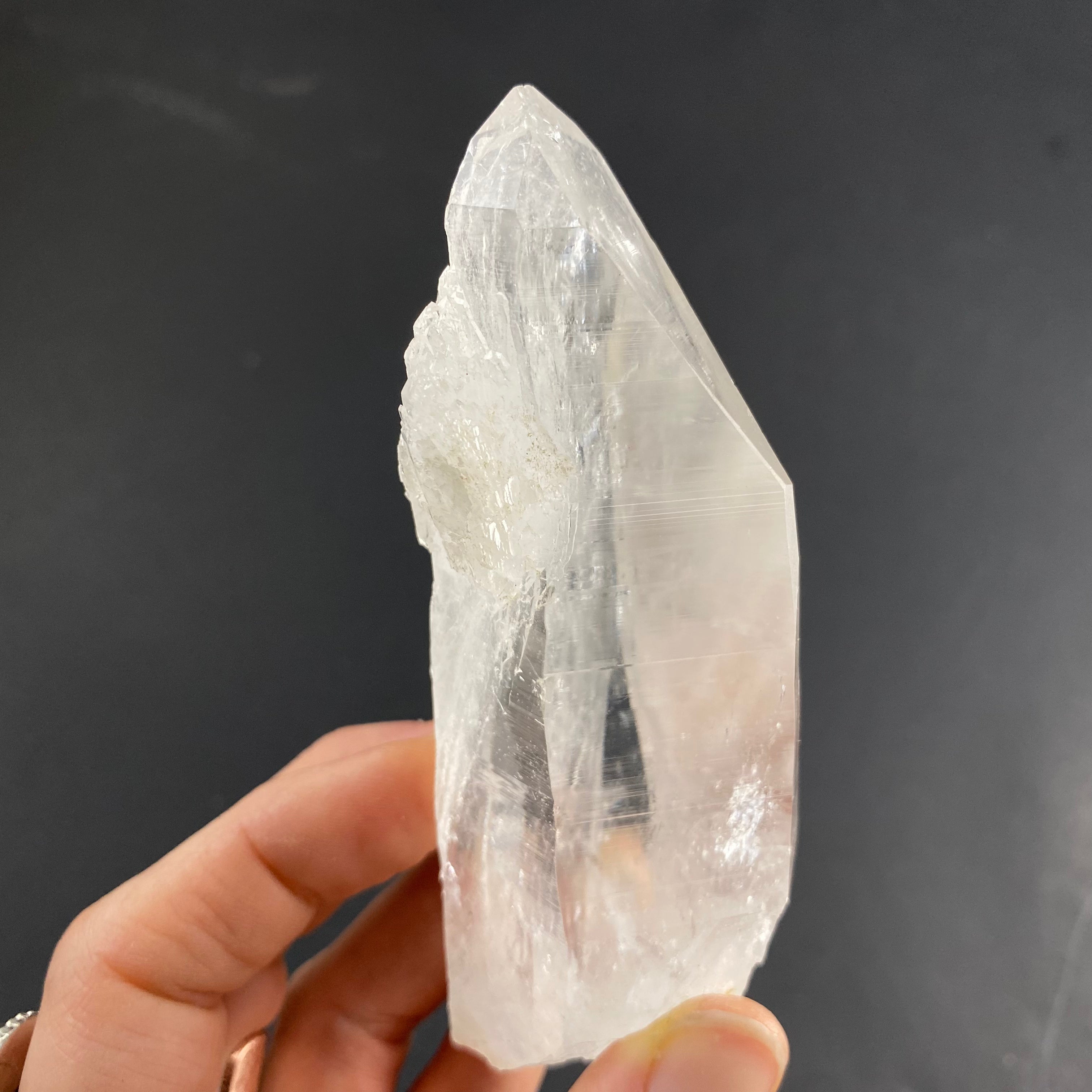 Colombian quartz are said to be among the highest vibrations when it comes to quartz, I especially feel it in the super clear ones. Most have heavy striations (that look like codes) on the crystals sides and are said to be a part of the “Lemurian” family or “Blades of Light”. I’d like to note that there are different views within the crystal and mineral community regarding the identifying features of these stones (basically, there is no agreed upon industry standard as to what defines a Lemurian quartz). That being said, I have observed the following characteristics in this batch of stones: incredible clarity, striated faces on all or most sides, a prismatic effect, quite a high vibration/energy, and seem to carry a lot of information.