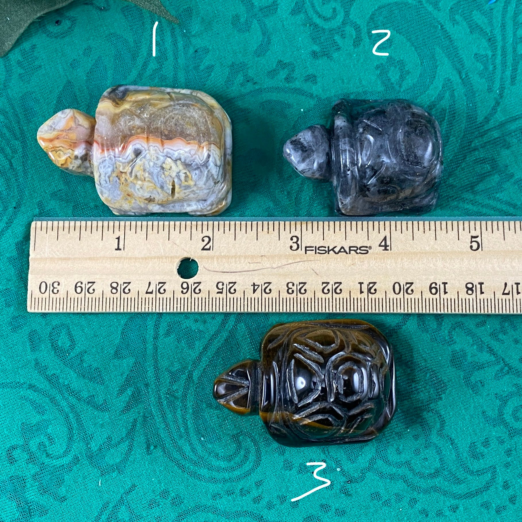 Crystal Turtle Carvings! Crazy Lace Agate, Larvikite, or Tiger Eye Turtle Carving! (price for one) C359/C360/C361