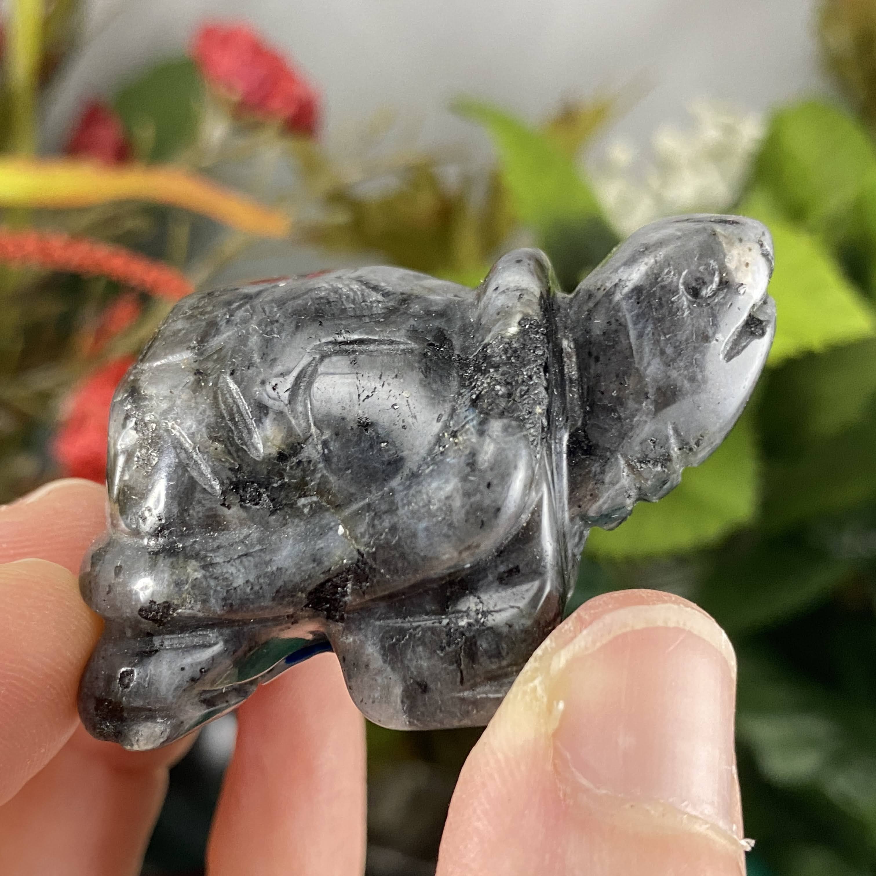 Ohhhh YAY! Turtle carvings! This listing is for ONE carving, please select the one that calls to YOU! You will get the exact item shown. The larvikite does not have wild flash but may possibly have a little.