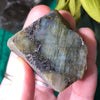 Ohhh these bring the best of both worlds, raw and polished all in one! Admire labradorites natural raw state but also seeing the details more clearly on the polished side. I love seeing the flash in the raw side too, simply beautiful!