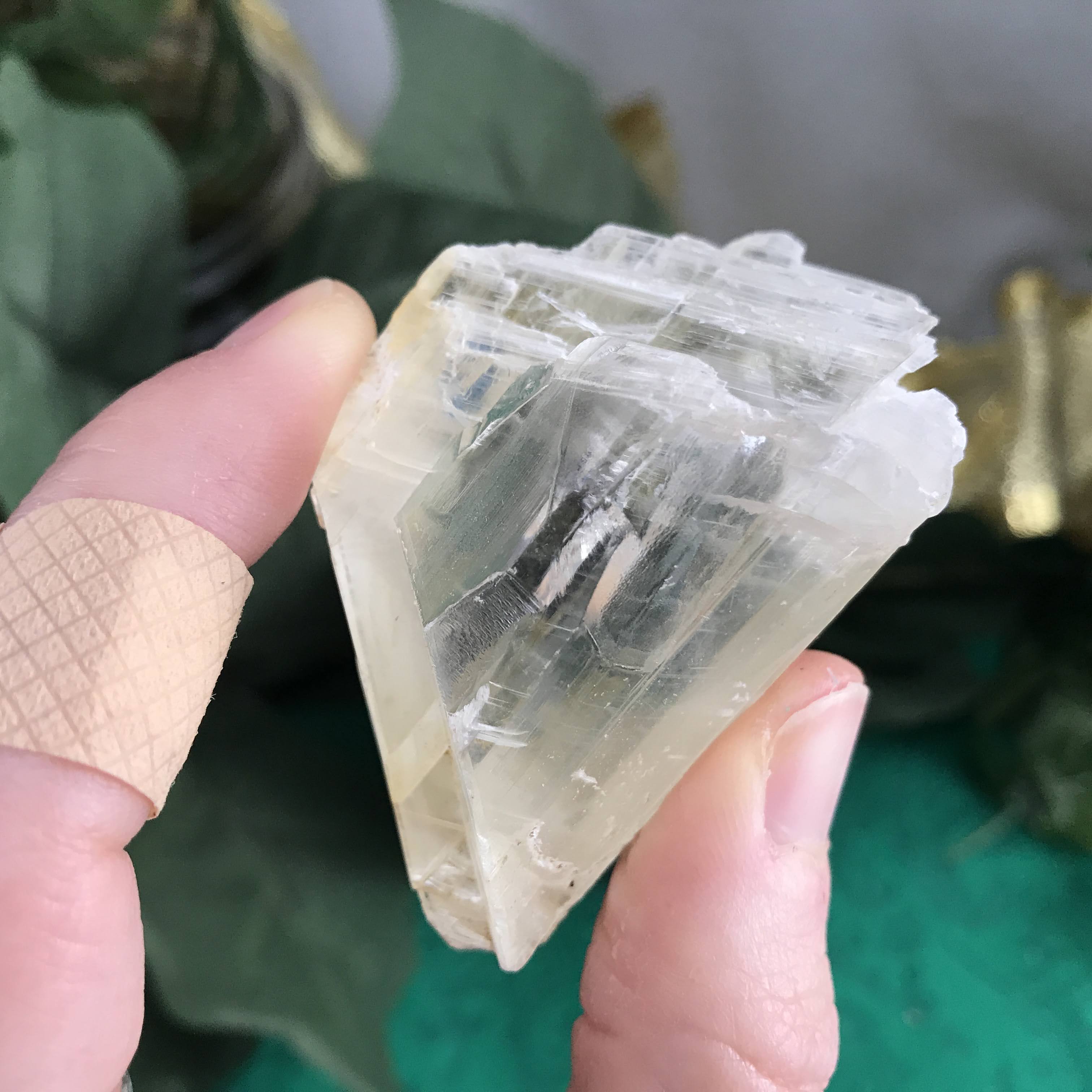 This here, is real selenite, not satin spar gypsum. The energy of true selenite is much more clear and powerful in my opinion. These crystals are like a bath of cleansing, refreshing, divine light energy. This light energy can help create direct communication to your angels, guardians, guides, the higher self, and divine beings. It can be a catalyst for awakening and connecting one to the mystic consciousness, which can be helpful in remembering one’s spiritual & psychic gifts. Also a connector to accessing past, present, and future lives.