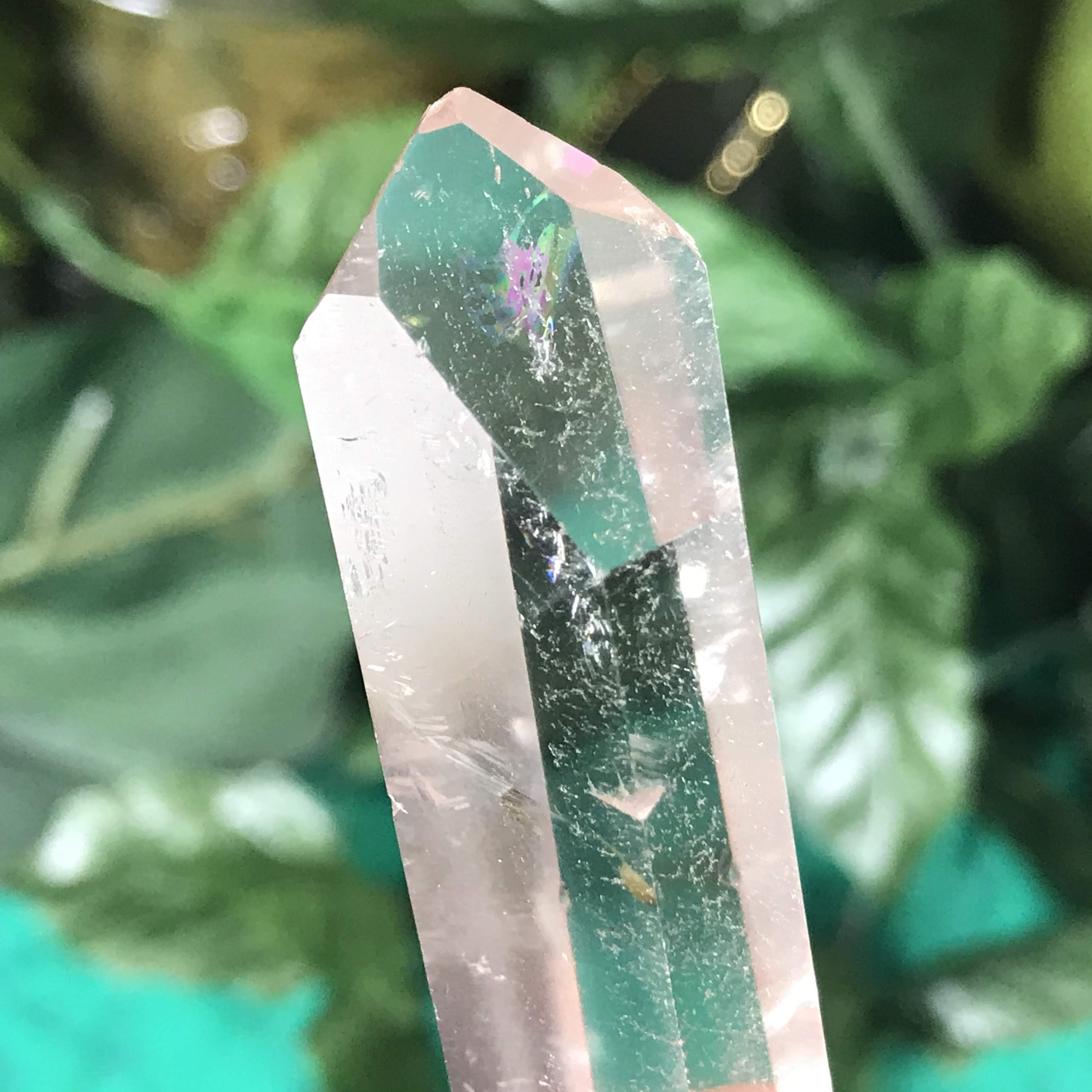 Quartz crystals with rainbows in the fractures within the crystal produce full spectrum of color when it comes to energy work. This makes them helpful for any of the chakras, and also gives an extra boost for manifestation work. They are a special gift (i mean, RAINBOW! :D ) that may help us see that love & joy is always present in every moment, and to live from a loving space rather than one of negativity.
